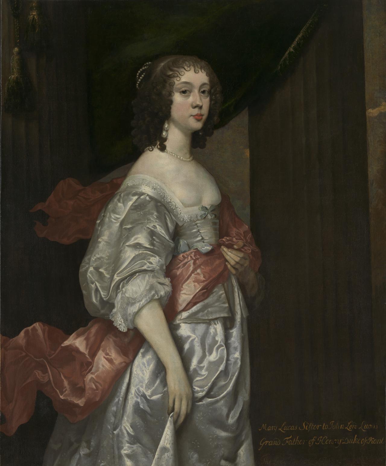 Mary Lucas lived and died in tumultuous political times. She was born into a noble family in 1600, just three years before Elizabeth I, the last monarch of the Tudor dynasty, died, and England and Scotland were united under a Stuart dynasty. Lucas and her family were royalists. They supported King Charles I in his war against Parliamentarians, a group of politicians and soldiers who wanted to abolish absolute monarchy. This portrait was painted before the English Civil War between Royalist and Parliamentarians broke out in 1642. In her memoirs, Lucas’s sister, the poet, philosopher and natural scientist Margaret Cavendish, described the closeness between Lucas and her other siblings, who met daily to lunch together at their mother’s country or London home. In summer the sisters walked through Hyde Park and took supper on barges along the River Thames; in winter they attended plays and took coach rides. Then, war broke out. Two of Lucas’s brothers were killed in the war, while her husband acted as a messenger for the king. Mary died in 1647, before the war ended. According to family legend, her tomb was broken into and desecrated by Parliamentarian rebels.