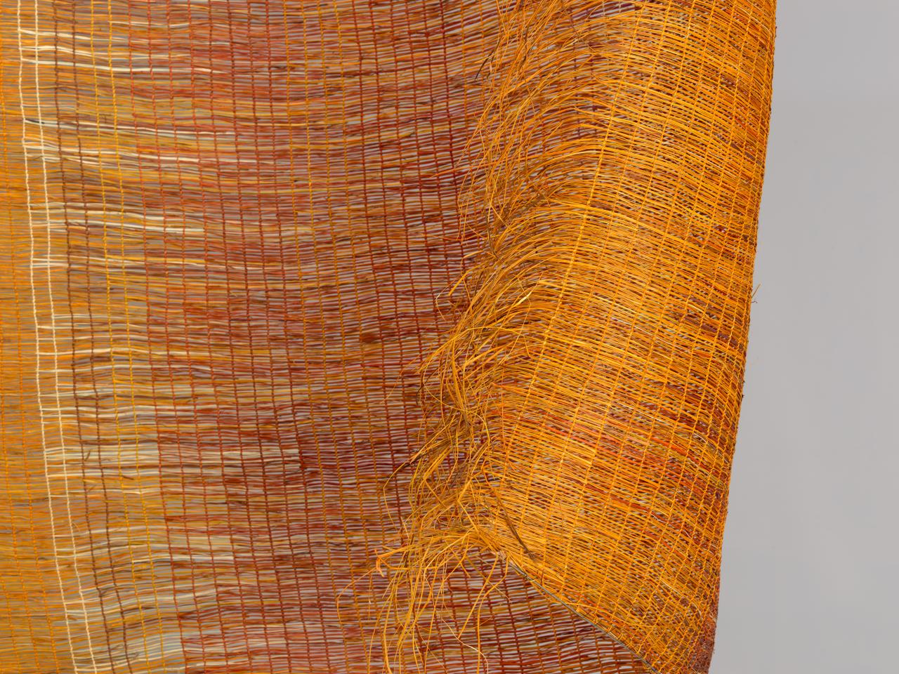 Mun-dirra, 2023, is an immense, 100-metre-long, multi-panel artwork that symbolises the extraordinary possibilities of the human mind and spirit. The beauty and ambition of this major installation reflects the creativity and collaboration that underpin so many aspects of Burarra art and culture. The Community of Maningrida in Central-West Arnhem Land has long been home to a rich and vibrant cultural heritage, with particular strengths in bark painting, sculpture and weaving. In 2021, the NGV commissioned Mun-dirra – one of most impressive examples of fibre art ever undertaken globally. After nearly two years of production, the NGV is delighted to present this monumental work, the largest woven sculpture ever produced in Australia.