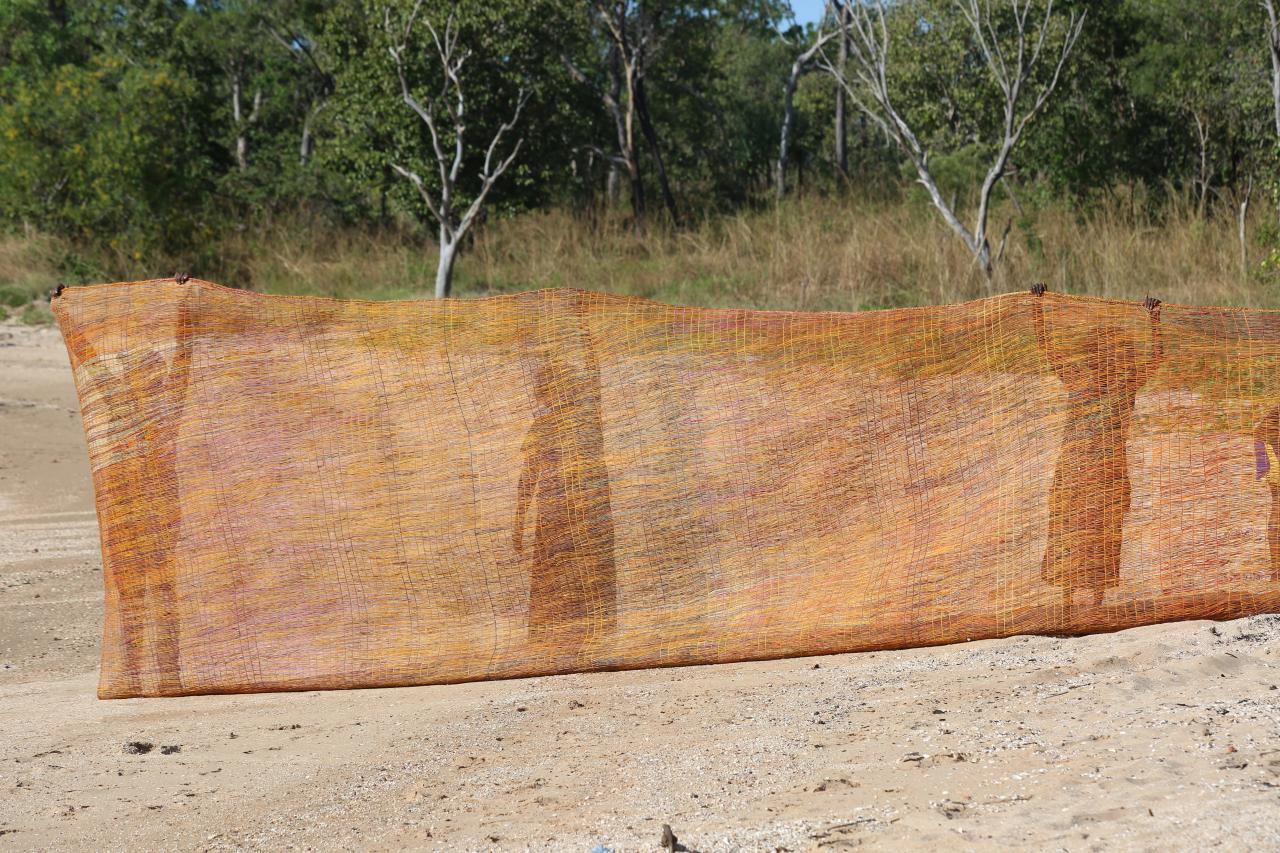 For Burarra people, the connection to land and waterways is profound. Their understanding of the natural world is defined by their relationship to place and sustainability, which is encapsulated in their knowledge of how to work with materials collected from Country. For First Nations people around the globe, sustainability has not been a choice, but a way of life. The survival of culture, family and Community remains intricately tied to the health of the environment. An innate understanding of the importance of sustainability is ingrained in the aforementioned types of fishing traditions. The lands and waterways are not resources to be exploited, but living entities that must be cared for and protected. For Burarra people, sustainability is not just important because of climate change, it is a moral imperative – one that is central to their ontological world view. Through processes like weaving, Burarra people