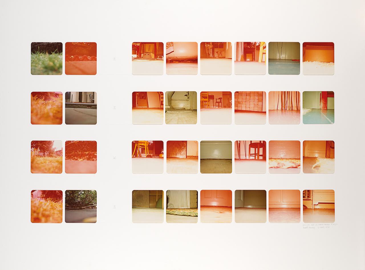 There’s two versions of it, one I’ve got, which I showed here and London, got some of its photos damaged so it has mismatching photos so I never have it up as it disturbs me.47 Cutforth, letter to Rooney, 12 Nov. 1974. The alternative version of Noon time-piece (April), 1969, that Cutforth mentions was the second version he made of the work, exhibited in Information, MoMA, 1970, and in other American and European shows. It was destroyed in a studio fire in 1986, leaving Rooney’s acquisition as the sole copy.