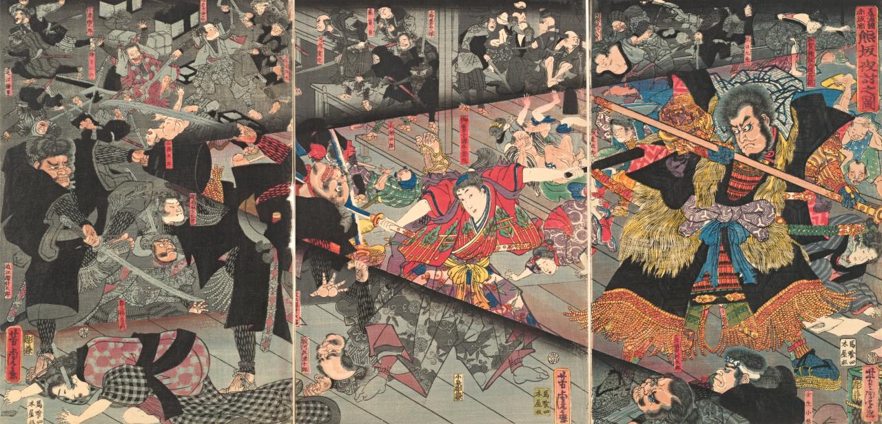 To circumvent the sumptuary laws of the Tempo Reforms of 1842 that banned actor and courtesan prints, artists also took their subjects from the historical and mythical pasts and produced warrior prints, which held great fascination for the general populace. These history prints are just as dramatic and theatrical as the kabuki theatre prints.