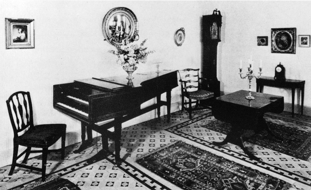 fitted with door and window, mantel, panelling, skirting, and bricks for a fireplace taken from ‘Clarendon’, a homestead built at Richmond, New South Wales, by Lieutenant William Cox, in 1808 … [These fixtures were] presented by Mr. Phillip Charley, Richmond, N.S.W., through Mr. W. Hardy Wilson, who selected the wallpaper and hangings, and supervised the fitting-up of the room.49Armstrong & Boys, pp. 26–7.