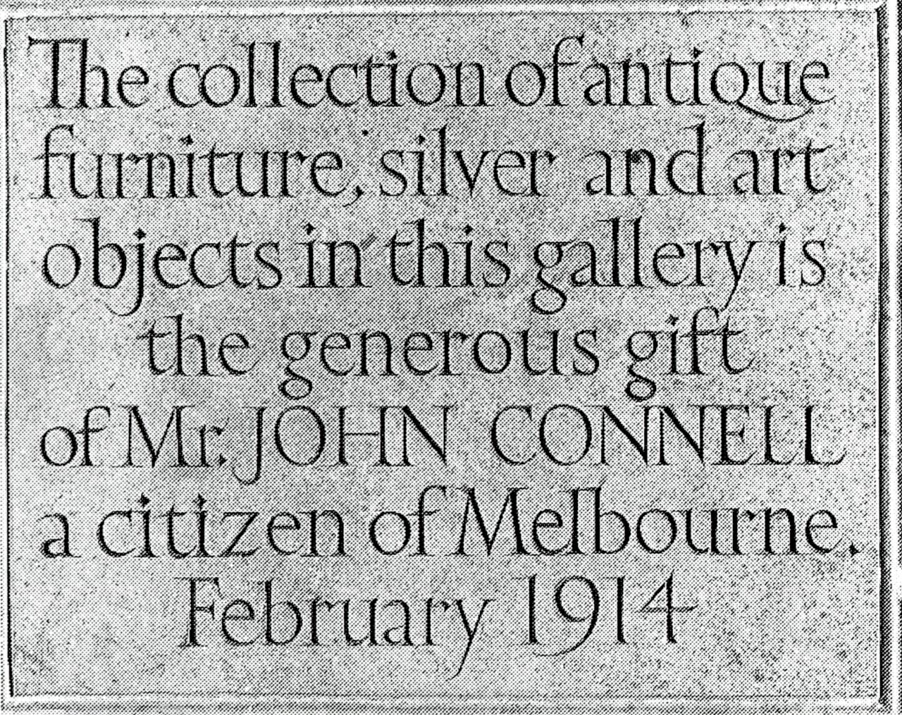 44 See ‘National Gallery Trustees: Mr. John Connell Honored’, Age, Melbourne, 10 November 1925, p. 11.
