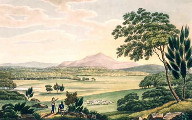 In 1819 Wentworth, who was living in London, published a history of British settlement in Australia, which looked towards intending emigrants as its audience.13W. C. Wentworth, A Statistical, Historical and Political Description of the Colony of New South Wales and its Dependent Settlements in Van Diemen’s Land with a Particular Enumeration of the Advantages which these Colonies offer for Emigration and their Superiority in Many Respects over those possessed by the United States of America, London, 1819. According to Wentworth’s own account, he wrote the book ‘to promote the welfare and prosperity of the country which gave him birth’, an aim which he thought he could best achieve by ‘attempting to divert from the United States of America to its shores, some of the vast tide of immigration which is at present flowing thither from all parts of the world.’14ibid, p. vi. The first sections of the text are given over to describing the main areas of settlement in New South Wales and Van Diemen’s Land, the type of land use which each supported, and other information of particular interest to the emigrant, such as the means of transport which the settler required to reach the area. In his writing Wentworth uses pastoral land use as a metaphor for civilisation, making an early connection between pastoralism and culture in Australian literature. He writes of the land around Bathurst: ‘an endless variety of hill and dale clothed in the most luxuriant herbage and covered with bleating flocks and lowing herds indicate that you are in regions fit to be inhabited by civilised man.’15ibid, p. 47. In drawing attention to the pastoral potential of the land and in calling for reforms in the colonial administration the book reflected the ideas of the prominent pastoralist, John Macarthur. Macarthur claimed his influence in a letter to one of his sons, wryly describing Wentworth’s reference to him as ‘very obliging and no doubt I suppose, intended as payment for the free use he has thought proper to make of my plans for the reformation of the colony.’16Macarthur to John Macarthur Jr, 28 February 1820, p. 5, Letters of John Macarthur to his sons 1815–32, Macarthur Papers, Mitchell Library, State Library of New South Wales, Sydney.