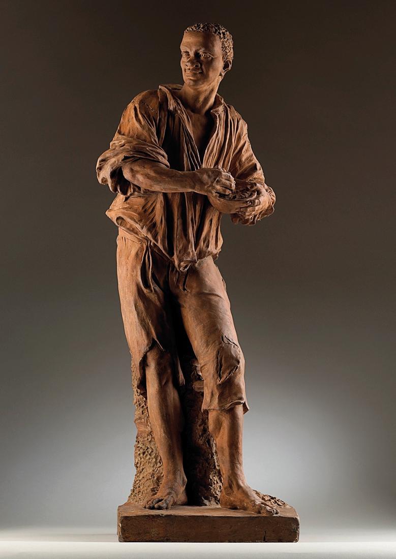 Willems’s immediate English family context was thus one in which he had regular contact with established artists, a number of them sculptors. In Mortimer’s Dictionary for 1763 there is this entry: ‘Willems, Joseph. Modeller, At the Brussels Coffee House, Chelsea; This Artist teaches Drawing, Modelling, & has modelled for the Chelsea China Manufactory for many years’.9Cited in Arthur Lane, English Porcelain Figures of the Eighteenth Century, Faber and Faber, London, 1961, p. 134. Although identified here as a ‘modeller’, Willems appears to have thought of himself as a sculptor. The exhibition catalogues of the Society of Artists of Great Britain for the years 1760–66 contain annual entries for sculptural models exhibited by Willems.10ibid. pp. 133–4. In a letter of February 1766 from François-Joseph Peterinck, director of the Tournai porcelain factory, to the city fathers of Tournai, seeking support for the employment of Willems as a professor at the art academy associated with the factory, Peterinck speaks of Willems as one ‘très entendu dans la partie de la sculpture et du modelage’.11ibid., p. 134. A handful of terracotta figures bearing Willems’s signature are known, including a figure of a Savoyard and a pair of dancing peasants, signed and dated 1742 and 1749 respectively, and a recently discovered figure of an African man dated 1736, from the period before Willems had moved to England (fig. 4).12See Bernard Watney, ‘Some parallels and proto-types in ceramics’, TECC, 1980; Adams, p. 88; Sculptura III, Tomasso Brothers Fine Art/Paul Holberton, London, 2010. During the years that he exhibited terracottas with the Society of Artists, Willems also seems to have been manufacturing terracotta garden sculptures, a number of which were advertised for sale in Chelsea after his departure for Tournai in early 1766.13Nancy Valpy, ‘Extracts from 18th century London newspapers and additional manuscripts, British Library’, TECC, vol. 13, no. 1, 1987, p. 80. When Willems died at Tournai in November 1766, an inventory of his effects included a number of white-painted terracotta models, some of the subjects of which were also produced as porcelain figures at Chelsea.14From the 5 March 1767 inventory of the effects of Joseph Willems, quoted in Lane, pp. 135–6. That Willems produced porcelain sculptures after terracotta models of his own making is clearly demonstrated by the presence in the collections of the Cecil Higgins Museum of a signed terracotta by Willems of a girl with flowers (the so-called Gardener’s companion) (S.12), the Chelsea porcelain example of which is held in the same collection. The inventory suggests that these models were of Willems’s own creation: ‘plusieurs grouppes de ronde bosse de terre cuite et colorées en blanc de sa composition, et par lui modelés’.15Lane, p. 135.