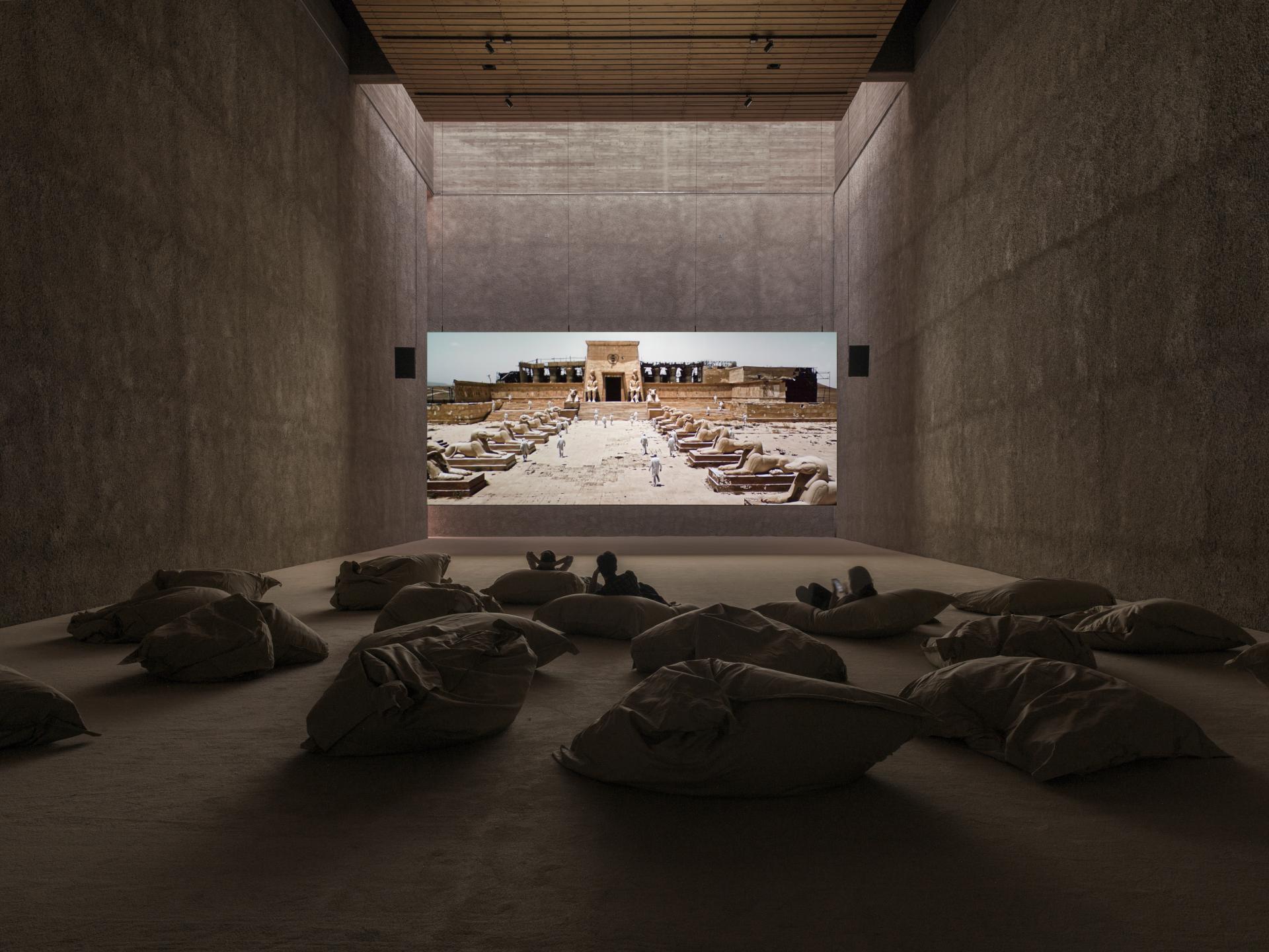 My idea was to look back from an imagined future on the Anthropocene and show the end of Genesis. It begins with Haydn’s oratorio, then there is the development of all these ancient cultures, which are depicted through the abandoned film sets – Roman, Greek, biblical sites, Egyptian – and then there is this unclear cut to the industrial age. I shot on location in the Ruhr area and west of Cologne and Düsseldorf in open-cut coal mines, which of course are leftovers of another achievement of civilisation, the industrial age.