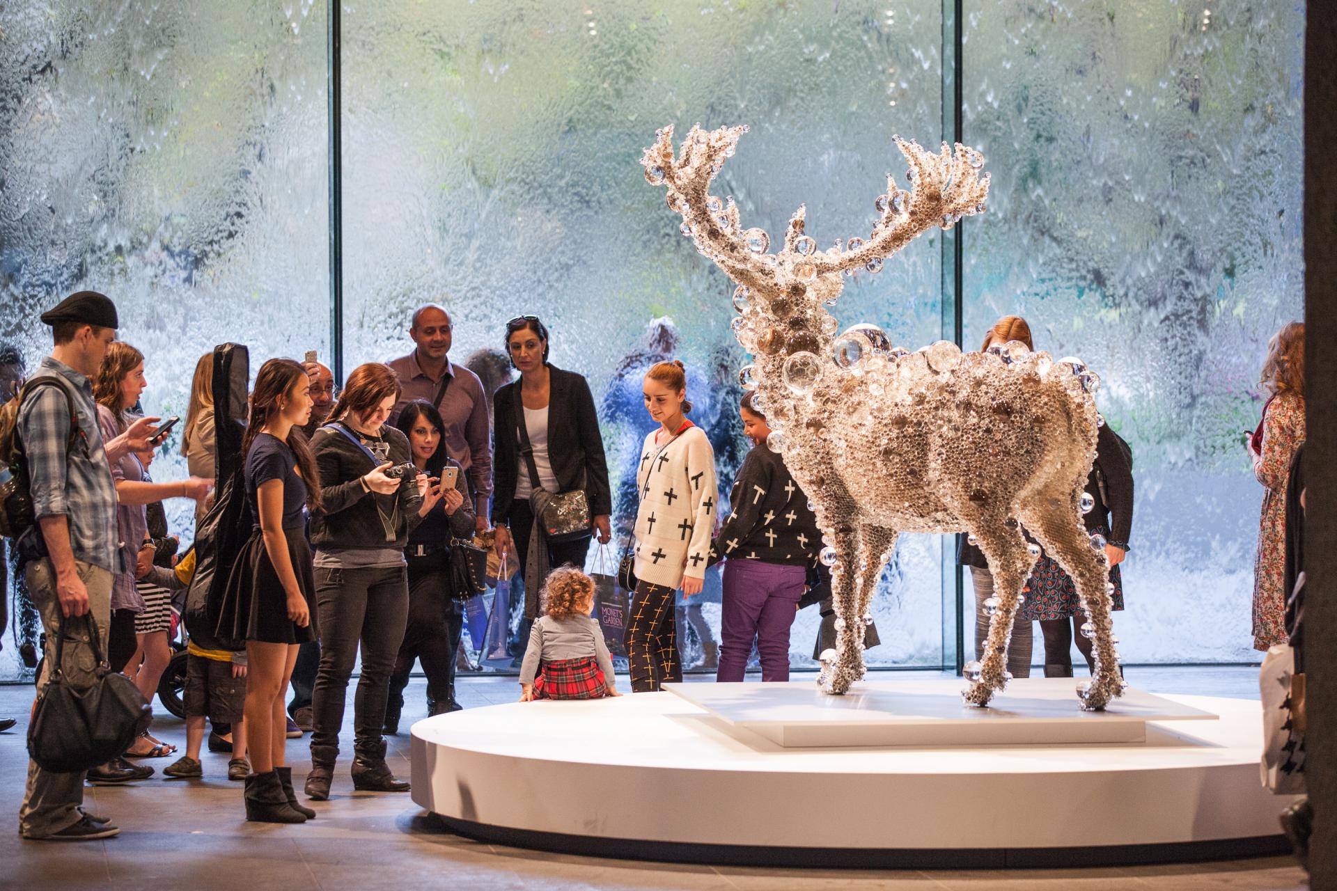 Visually, Nawa’s PixCell-Red Deer enchants viewers with the natural grace and balance of its stance, the elegant, outstretching form of its antlers and its uncountable number of lenses reflecting micro-visions and translucent light. However, in a profound and subliminal way the artist’s ingenious intervention and use of new mediums also sheds light on our human desire to embrace, cherish and possess uncertainty.