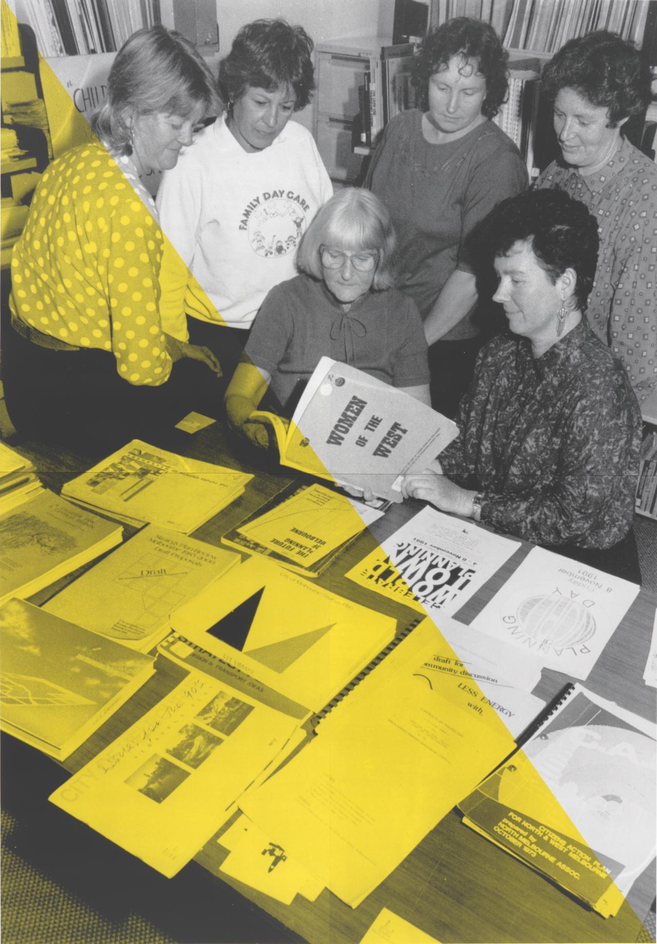 Central to the Solve Your Personal Problems Socially series is a photograph of Ruth Crow giving a demonstration on urban design to Women of the West, a group from the Sunshine Children’s Cooperative, which was active during the 1980s in Melbourne’s western suburbs. Crow’s interests in communism, urban planning and community welfare are reflected in the manifestos, pamphlets and self-published documents seen on the table in the photograph. Floyd, in turn, used these same documents as source material for her prints, selecting those with specific references to left-wing movements in Australia and the Asia-Pacific, transforming them into compelling, abstracted, colour-saturated images. The title of the series (Solve Your Personal Problems Socially) further reinforces this emphasis on collective action. It was taken from a slogan devised by Crow for a principle she believed necessary for the ‘successful long-term functioning of collectives’.15 The phrase is drawn from the following text: ‘The successful long-term functioning of collectives depends on the conscious sharing of value judgements enabling participants to: fuse their personal needs with the hopes and ideas of others; solve your personal problems socially; begin to envisage the future; find common ground with participants in other organisations which have different immediate aims but share basic values’. Ruth Crow, ‘Building communities’, introduction to the Community Matters Conference, 15 Sep. 1989, published in Building Communities, self-published pamphlet, Collection of Ruth and Maurie Crow, Victoria University Library, Melbourne, CROW Box 21, 21/1, DOC.