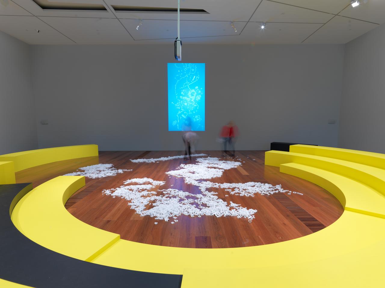 Floyd’s shared interest with Mary Featherston in public engagement, community and pedagogy, earlier explored in Ripple, led to Floyd and Featherston collaborating on the participatory children’s installation Word farm, installed as part of The Dawn exhibition in 2014. The project included a tactile installation of individual letters of the alphabet for children to arrange and play with in an exploratory way, echoing the strategies of text-based works Floyd had made earlier in her career.22 Examples include It’s because I talk too much that I do nothing, 2002 (Private collection, Melbourne); A strategy to infiltrate the homes of the bourgeoisie, 2005 (National Gallery of Victoria, Melbourne); The outsider, 2005 (Lyon Collection, Melbourne). Featherston had previously designed spaces in schools that were inspired by the alternative education philosophy Reggio Emilia, which promotes self-directed, experiential learning – concepts that align with Featherston’s pedagogical philosophies. Floyd, meanwhile, viewed the spatial arrangements found in learning environments as a form of ‘expanded sculpture’.23 Emily Floyd, email to Jane Devery, 26 June 2014.