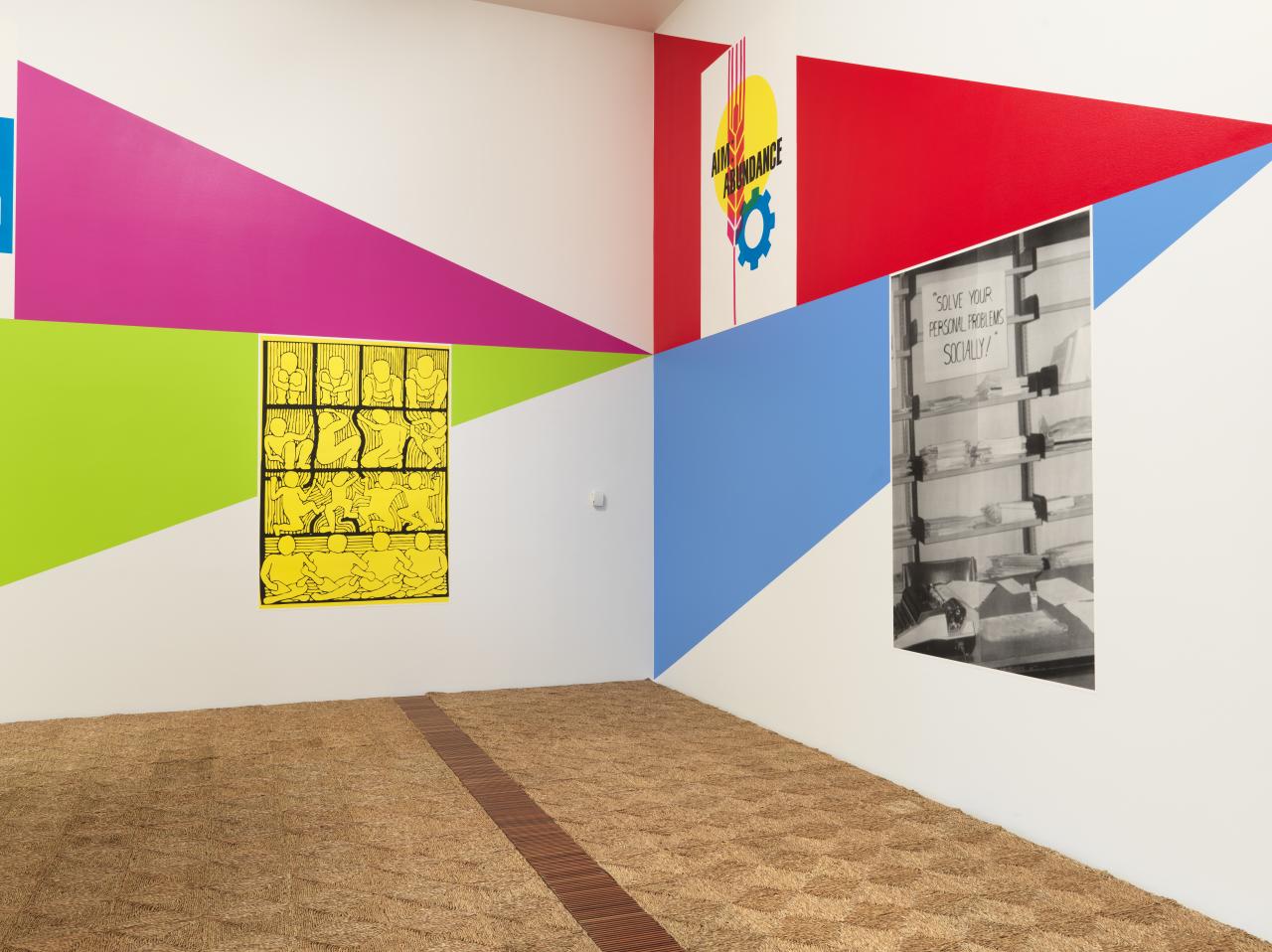 Floyd used archival material again in her Solve Your Personal Problems Socially series of screenprints, the first of three works commissioned by the NGV in 2014. Similar in form and intent to Ripple, they used archival text as a departure point, this time from the collection of Melbourne social and political activist Ruth Crow AM. Crow and her husband Maurie resourced several generations of urban campaigners during their fifty years of political and social activism. They considered their archive of printed material and working papers (now held in the Special Collections room of Victoria University Library, Melbourne) as tools for learning, or a ‘Living Library’.13 ibid. Growing up in Melbourne, Floyd had participated in children’s workshops designed by Crow that aimed to foster collective action and a sense of common purpose. For Floyd, the documents in the Crow collection possessed a ‘particular graphic intensity and personal resonance, encapsulating local histories of feminism, childcare, unionism and neighbourhood community development’.14 ibid.