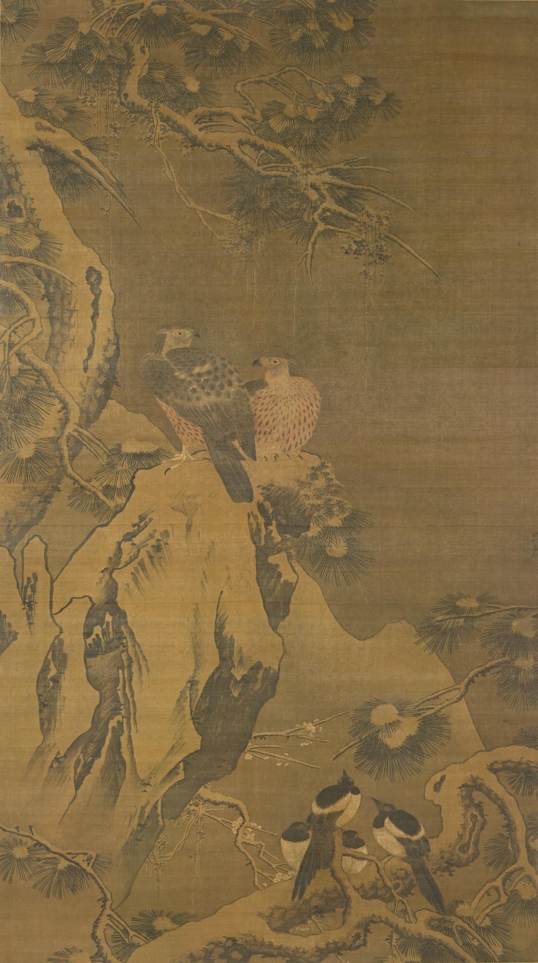 In Birds in a winter landscape by Lu Ji, the power and strength of the hawks is
