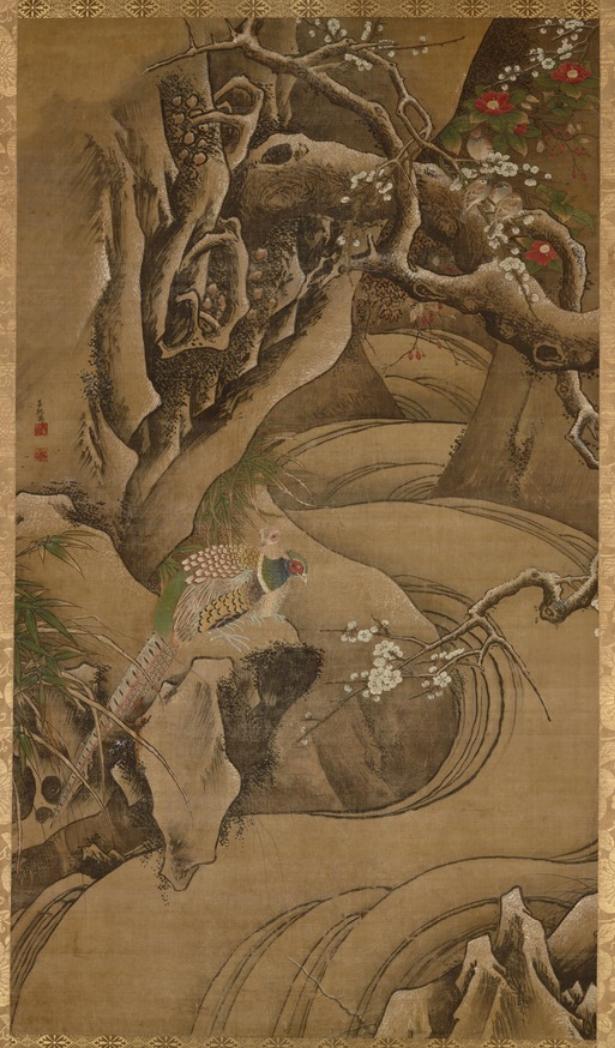 Kano schools of painting. The painting Birds in a winter landscape demonstrates this