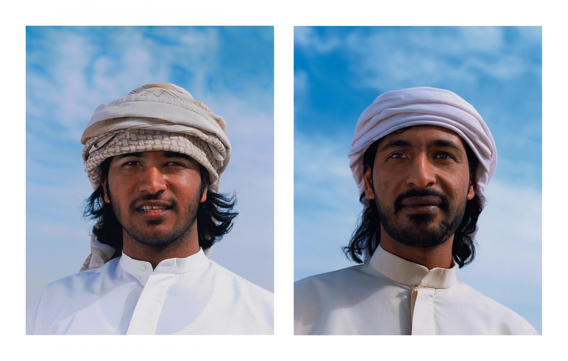 The Al Hammadi portraits form part of a larger series of photographs entitled Random acts which was first shown in Sydney in 2007. They were initially displayed alongside landscape images which depicted places identified by the artist as important geographical sites as they lay along both the ancient frankincense trade routes and the falconry migration routes travelled by the Bedouin. Such migratory zones, which are often borderless areas possessing extraordinarily complex histories of trade, travel, conflict and cultural exchange between East and West, were of great interest to the artist, particularly the ways in which the sites retained a continuous living link to the past.