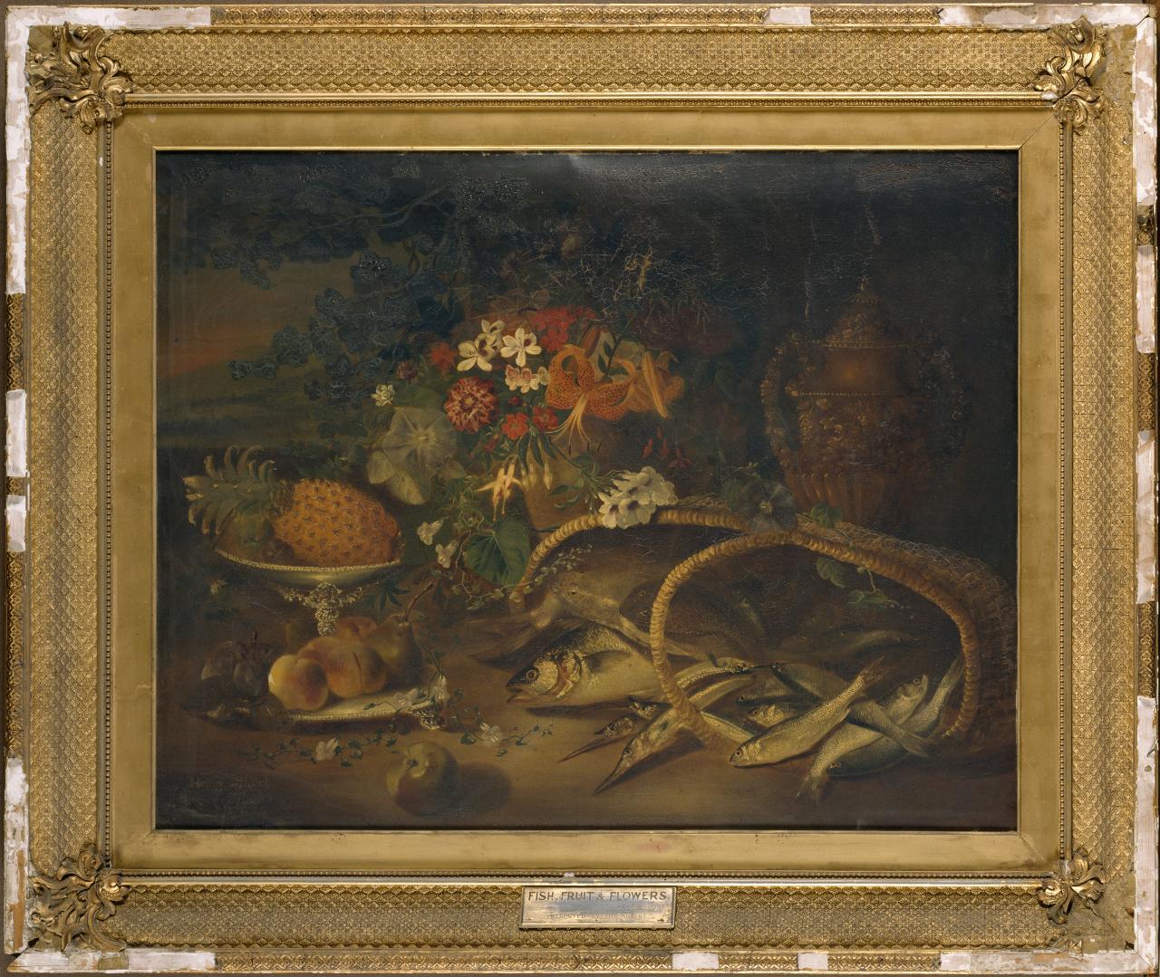 Before frame treatment, Henry Short, Fish, fruit and flowers, 1860, National Gallery of Victoria, Melbourne