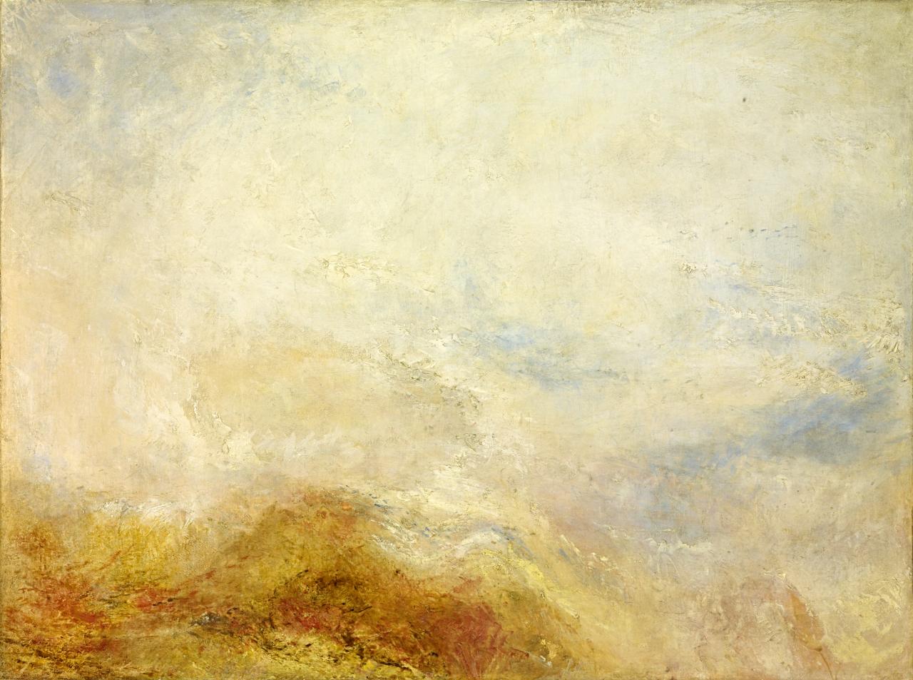 At the very heart of Rothko’s art lies a dialectic between the material object and immaterial belief which was to find its expression in form. Rothko was not asking the question ‘What is painting?’, so much as he was struggling to demonstrate the absolute, ‘the existence of the invisible in the visual’.21 J. F. Lyotard, ‘Presenting the Unpresentable: The Sublime’, Artforum 20, April 1982, pp. 64–69. Like the 19th-century painters of the landscape sublime, Rothko dissolved the material into a dynamic and luminous expression of transcendental experience. In his late work, such as the Gallery’s Val d’Aosta, Turner did much the same. Turner, it should be added, remained a realist, even in his most abstract works.22 Butlin, op. cit. p. 4. His late unexhibited oil paintings, as Martin Butlin has pointed out in his discussion of Val d’Aosta, were pictures awaiting specific details and subject matter. It was Turner’s habit to introduce both on the varnishing day before the opening of the exhibition. What we see through the diaphanous light of Val d’Aosta is an incomplete mountain scene. The spectator would have been filled in later.