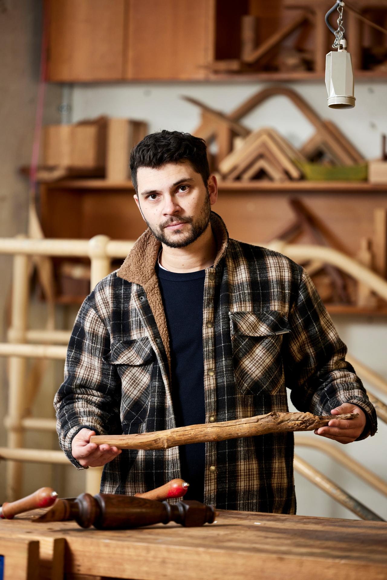 Already friends and professional supports, Nunga (Kaurna Miyurna) and Māori (Te Arawa) man James Tylor identified that the mentorship and exhibition program would be a meaningful space for Aidan Hartshorn, a Walgalu man of the Ngurmal Nation, to develop his modes of making. Tylor is a multi-disciplinary visual artist whose practice explores the Australian environment, culture and social history. These mediums include photography, video, painting, drawing, sculpture, installation, sound, scents and food. For My Country, Hartshorn builds on research he has undertaken for his master’s degree, which considers the implications of the Snowy Mountains Scheme – Australia’s largest hydroelectricity and irrigation complex, which has and continues to be one of the major causes of decimation on his Country. Hartshorn worked with Canberra Glassworks to fabricate sixteen diamond-shaped glass shields that form an installation. Each shield is suspended in space and weighed down by electrical cords that illuminate them. This tension characterises what Hartshorn terms ‘ghost objects’ – the powerful yet burdened presence of these translucent shields speaking to the ways culture has been removed, obscured and misrepresented through colonial forces.