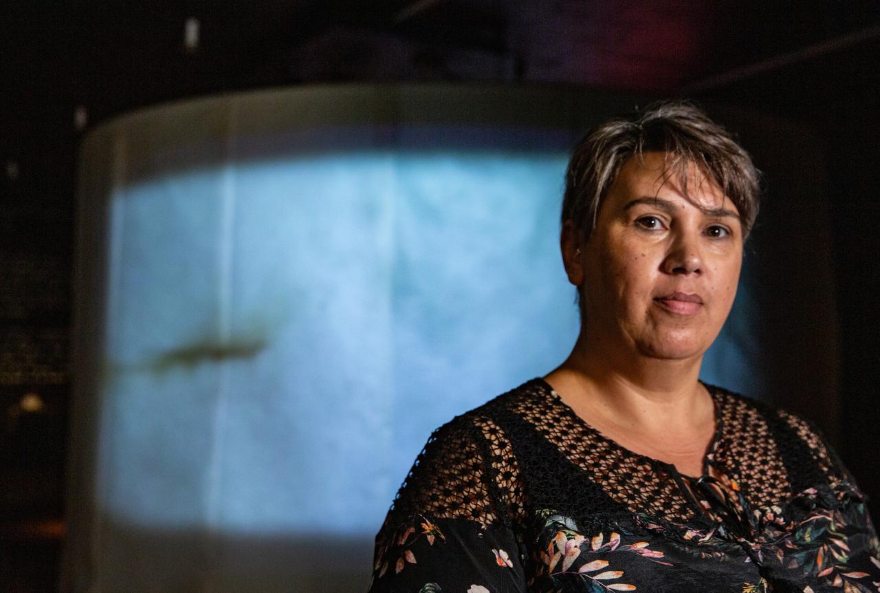 Robinson saw this commission as a quintessential opportunity to bring Rose’s practice to the forefront of national discourse and, rather than direct it, she supported Rose’s capacity as a ‘deep listener … to hear the pause when Cheryl spoke about Country and what it meant to her’. Through this process, Rose has realised Fragments, an installation centred on a large-scale work on Japanese Kozo paper. Gently collaged onto its surface are hand-rendered images and archival references to digging materials that were collected from the caves at pinmatik (Rocky Cape) and stored at the Tasmanian Museum and Art Gallery in the 1970s. Accompanied by an audiovisual component that provides the atmospheric sounds of this sacred site, the installation emanates the connectedness and emotion Rose gets from her Country that heals her.