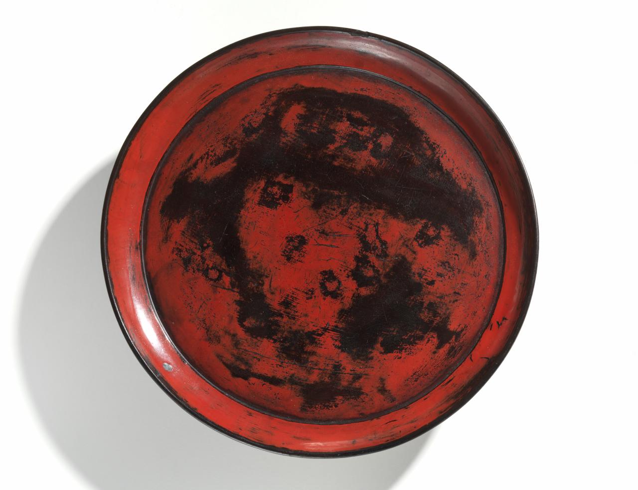 Since ancient times the Neolithic people of Japan have used the sap of the lacquer tree (Japanese sumac, or Toxicodendron vernicifluum) mixed with cinnabar pigment to produce red lacquered objects for daily use. Red is considered a sacred and auspicious colour in Japan. It is used widely as the colour of shrines and temples, as well as of sacred offering vessels and in some instances, such as red sea brim, the colour of the ritual offering itself. The first illustrated evidence of the use of red lacquer ware is found in handscrolls, including the twelfth-century Tale of Genji ‘Kashiwagi’ scroll in which circular trays similar to the one in the NGV collection are shown being used by members of the imperial aristocracy. In the fourteenth-century handscroll Miraculous stories of the gods of Kasuga (Kasuga Gongen Genki-e), we see shrine priests eating from stem tables identical in appearance and age to examples in the NGV collection, and in the sixteenth-century The illustrated scroll of the sake and rice debate (Shuhanron ekotoba), we see monks using red lacquered trays, bowls and large dishes.