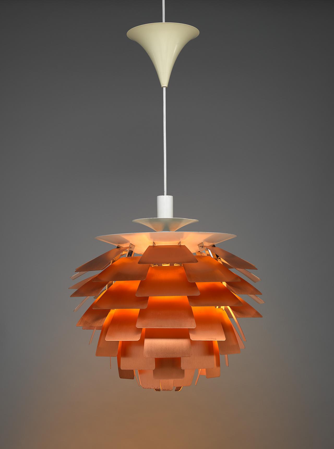 In 1958 Henningsen designed the most sophisticated version of his multiple shade principle for the Copenhagen restaurant Langelinie Pavilion – the Artichoke lamp. The lights still hang in the restaurant today, but can also now be found in public and private interiors all over the world. The Gallery’s example, included in Nordic Cool, is a rare, early production from 1960.