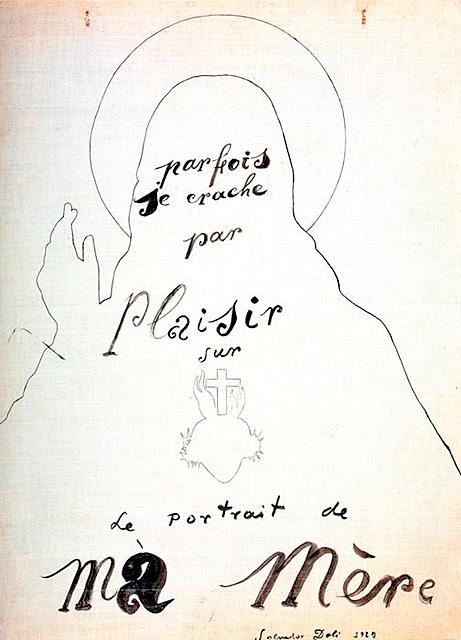 Salvador Dalí’s The sacred heart (Sometimes I spit with pleasure on the portrait of my mother), 1929, for example, explicitly combines the image of the Christ and the Church’s connection to the idea of the virtuous mother, and spitting as an expression of the disgust at the priesthood, which the Surrealists saw as corrupt and hypocritical. Moreover, there are countless examples of Surrealist ‘nunsploitation’ – drawing blasphemous allusion between the Virgin and sex – the more one looks, the more one finds. Examples include Breton and Éluard’s poeticised version of the Kama Sutra entitled ‘L’immaculée Conception’, or Conroy Maddox’s hyper-blasphemous photographic series Conroy Maddox Entertaining a Nun, 1942.
