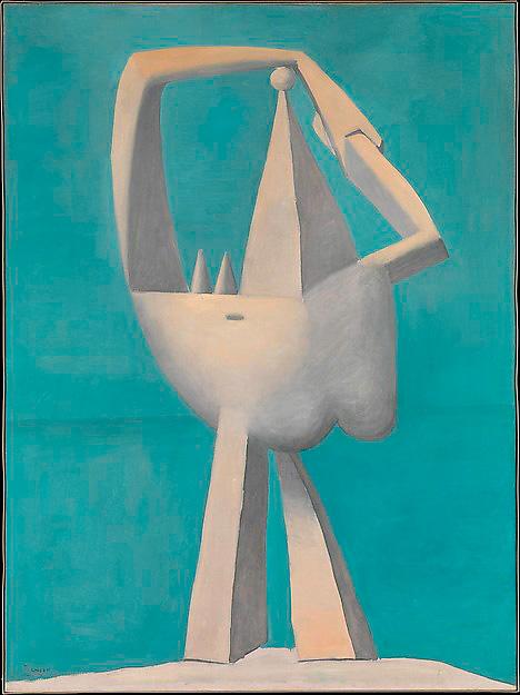 It was during the 1920s that Picasso was most influenced, and courted, by the Surrealist group.30 Ruth Markus, ‘Surrealism’s praying mantis and castrating woman’, Woman’s Art Journal, vol. 21, no. 1, 2000, p. 35. It should be noted that Breton claimed Picasso as a kindred spirit to the Surrealists (he used his collage of the minotaur for the cover of the first edition of their journal, Minotaur, in 1933) and sought to classify his works as ‘Surrealist’ (as he did others). See Elizabeth Cowling, ‘Proudly we claim him as one of us’: Breton, Picasso, and the Surrealist movement’, Art History, March 1985, pp. 82–104, first cited in Markus, p. 38, n. 28. Domínguez must have been acutely aware of Picasso’s work from this period, for there are striking similarities in the manipulation of the female form in Domínguez’s Arrivee de la belle époque and Picasso’s bather: the hollow, dentured caverns inserted into the bodies of both females resonate in violent simile. And Dominguez continued to adopt and adapt such imagery over the subsequent decade.