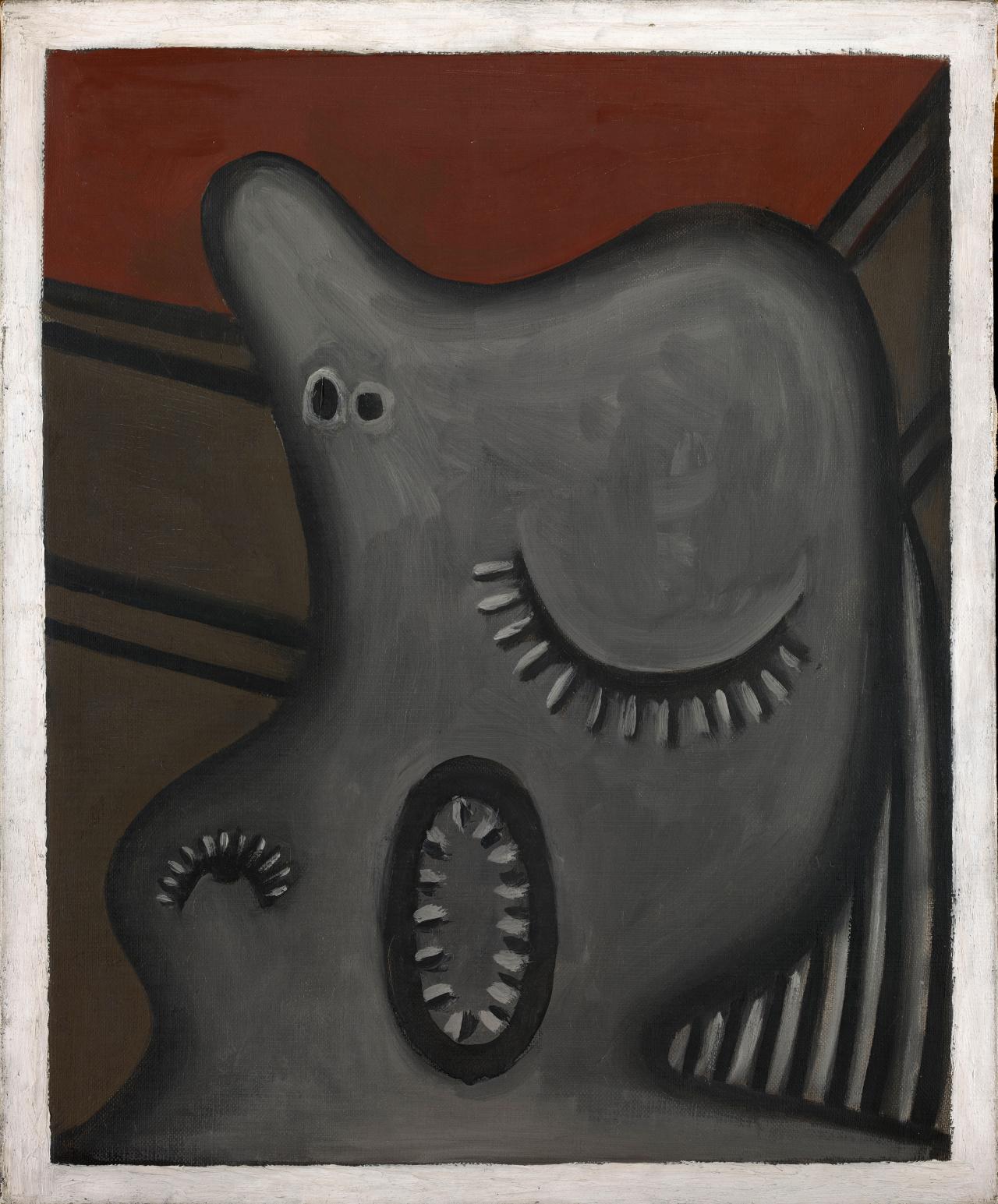 In December 1929, the journal Documents was founded in order to replace La Révolution Surréaliste and to continue the dissemination of Surrealist concerns. Upon its pages some of Picasso’s most violently misogynistic works were reproduced,26 An entire issue was dedicated to the artist in 1930 (series 2, no. 3). including a number of works from his Dinard series of 1927–29, in which he renders the visages of women flat, menacing and ‘skull-like’, and punctuates them with dentured and ‘abstracted vaginas or anuses’.27 Gott, p. 136; William L. Pressly, ‘The praying mantis in Surrealist art’, The Art Bulletin, vol. 55, no. 4, Dec. 1973, p. 600. See also R. Rosenblum, ‘Picasso and the anatomy of eroticism’, in T. Bowie & C.V. Christenson (eds), Studies in Erotic Art, Basic Books, New York, 1970, pp. 337–392. To further illustrate the point, Rosenblum writes: ‘from about 1927–1933 Picasso devoted much of his energy to the creation of images corresponding to the psychological and physiological realities of sexual experience.’ And continues, ‘At times, sexual impulses, particularly those of women, are seen as menacing, brutal, and destructive’ (p. 338). To further illustrate the point, Rosenblum writes: ‘from about 1927–1933 Picasso devoted much of his energy to the creation of images corresponding to the psychological and physiological realities of sexual experience.’ And continues, ‘At times, sexual impulses, particularly those of women, are seen as menacing, brutal, and destructive’ p. 338. The acutely stylised profile of the subject in Sleeping woman, 1927, for example, features a gaping opening: the ‘mouth’ of a vagina lined with sharp teeth. In his Nude standing by the sea, 1929, furthermore, Picasso sculpts, mutilates and metamorphoses the female physique. Not only is the head of the figure reduced to the diminutive size of a pin, but her breasts – two pointed cones – have migrated to the square cavern created by her back, shoulder and lifted arm. These tooth-like forms sit in close proximity to a horizontal slit – a navel, mouth or, indeed, genitals. As art historian Dawn Ades writes in her analysis of the painting, ‘the notion of the vagina dentata is never far away’; Picasso paints a striking anatomical analogy ‘with visual rhymes between the faces and genitals – or even elision between them – emphasising the point’.28 Dawn Ades, ‘Pablo Picasso, Woman by the sea, 1929’, in Surrealism: Revolution by Night, p. 43.