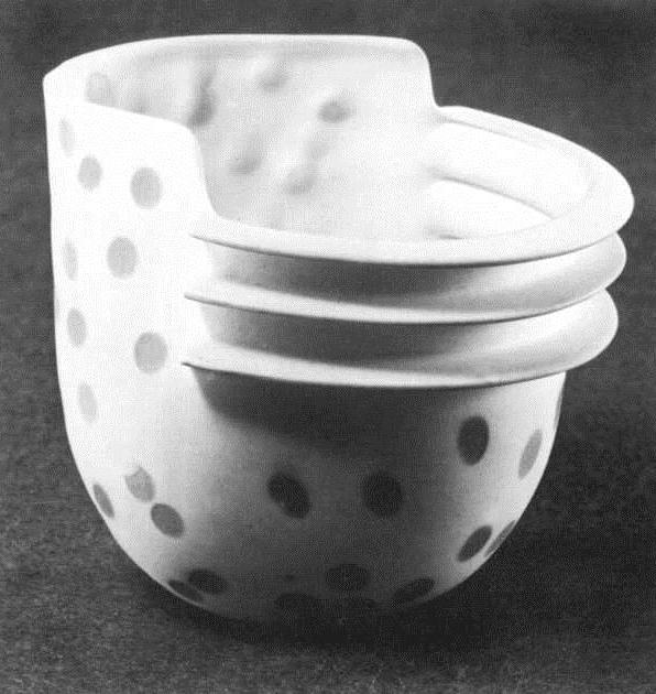 These elements, and particularly the last, provide a link with the porcelains of Mary Rogers, Jacqueline Poncelet and Sheila Fournier, who are key figures in the revival in England of an interest in the making of porcelain.