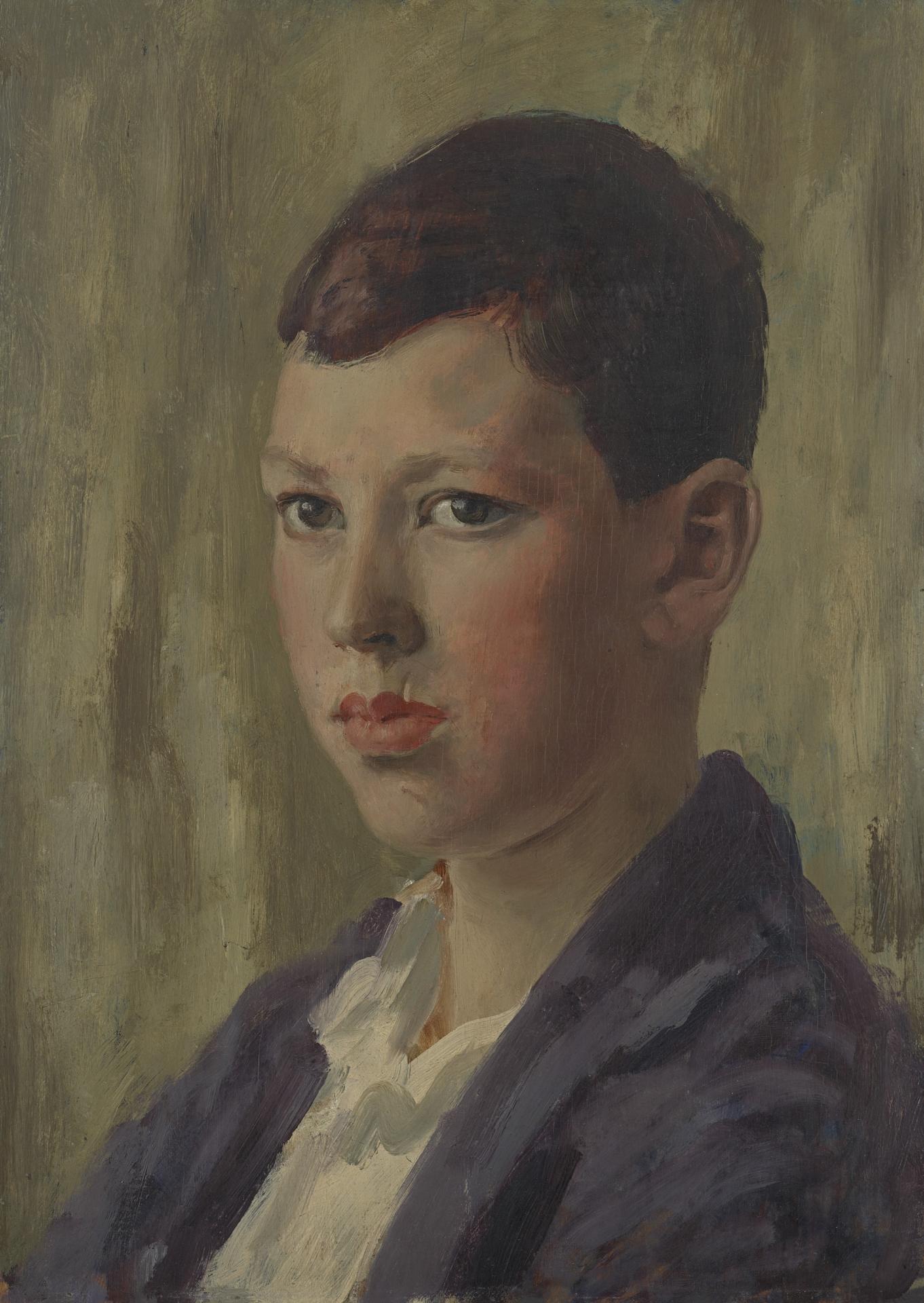 This exquisite painting is a portrait of Robin John, the third son of Augustus John’s first wife, Ida Nettleship, at the age of fifteen or sixteen. As a child Robin was constantly climbing and jumping, a habit that may have extended into his teenage years to judge from the scar that John has delineated with a deft lick of paint on his son’s left upper lip.1Michael Holroyd, Augustus John. The New Biography. Farrar, Straus & Giroux, New York, 1996. p. 197. When this work was reproduced in the journal Art in Australia in 1922, The Australasian newspaper commented: ‘It is perhaps worth mentioning that the mark on the upper lip of the upper lip of the boy is not a fault in printing but is in the original’, ‘Art in Australia’, The Australasian, 2 Jun. 1922, p. 50.