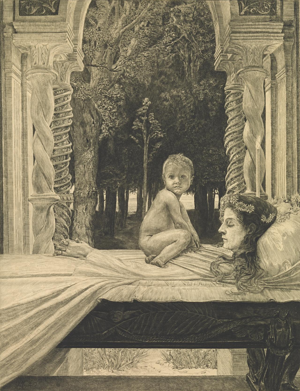 Max Klinger (German, 1857–1920): Vom Tode I (On Death I), 1889 (Singer 171–180, all inscribed proof impressions of final states); Tote Mutter (Dead mother), 1890 (S.239 iv, proof impression); An die Schönheit (To the beautiful in nature), 1891 (S.241 ii, proof impression).