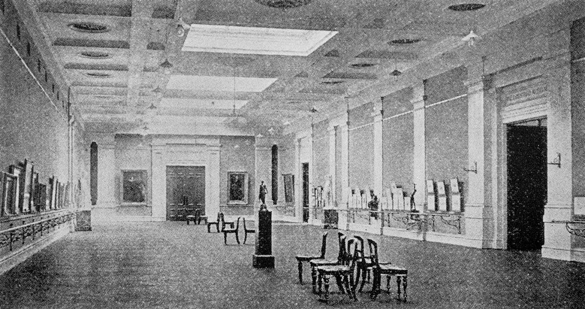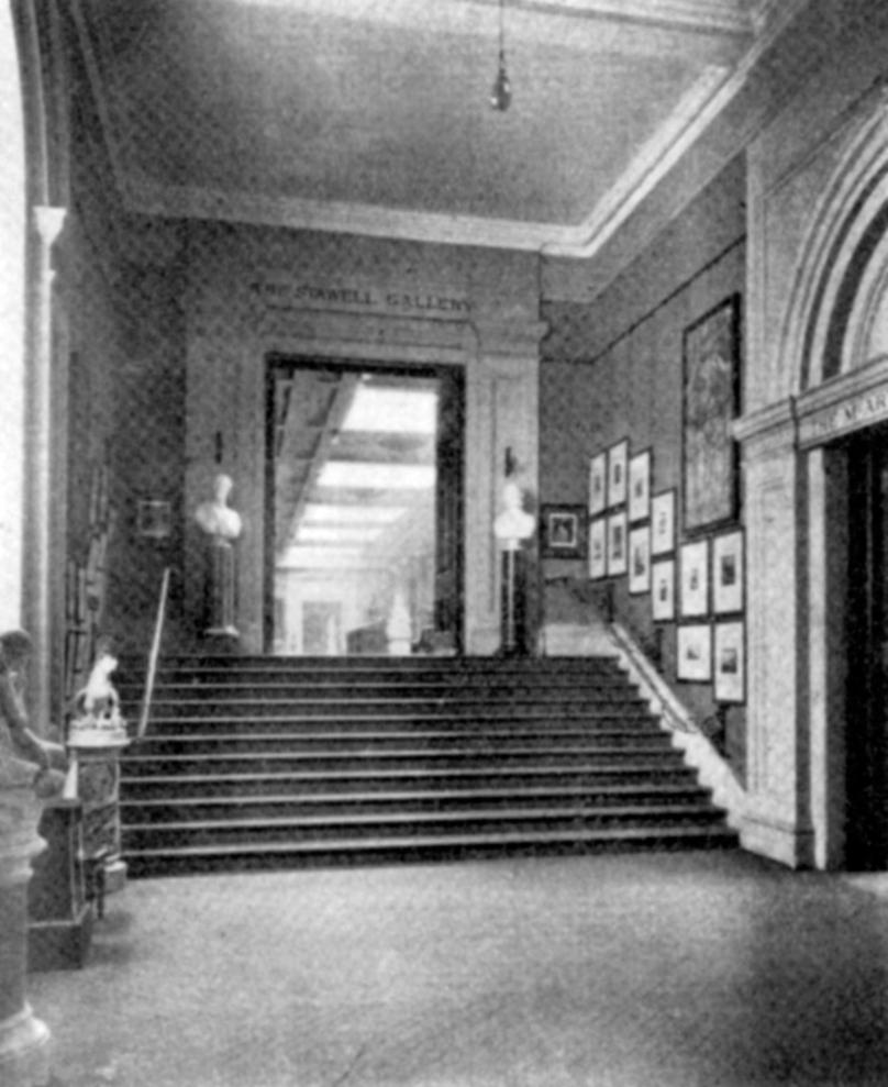 The first known photographic documentation of the early displays of the etchings appears in the Gallery’s illustrated catalogues. The first of these was published in 1894 and records the installation organised by Bernard Hall in the newly built extensions to the Gallery (fig. 1). Here the prints were grouped in two-tiered clusters and hung against walls that were described as being ‘effectively coloured a dull grey of the true “wrapping paper” tint’.35 Argus, 11 March 1893. However, the unveiling of the etchings to public gaze was not without its hazards. As early as September 1893 Bernard Hall reported that the mounts were suffering from contact with damp walls and recommended that the prints be hung three or four inches away from the wall.36 Public Library Register, Inward Letters 1889–93, item 1428, September 1893, Public Record Office, Laverton. At the same time, the Klingers were displayed diagonally opposite the large window of the vestibule (fig. 2), a space they shared with a dozen newly acquired etchings by Queen Victoria and Prince Albert (a gift from the Queen that had been received in May 1893). In 1907 the temporary removal from display of some of the prints was greeted with well-meaning, but misguided, indignation, prompted in one instance by a particular admiration of Whistler.37 See ‘C. W. B.’, letter to the editor dated 20 May 1907, Argus, 24 May 1907: ‘I was considerably disappointed … last week to notice that the excellent collection of Whistler etchings had almost entirely disappeared from the walls. To myself and others such a proceeding seems extraordinary, for I have always regarded them as being the very finest possessions in the national collection’. As John Shaw Neilson’s appreciative letter shows, some of the prints were still out in 1917.