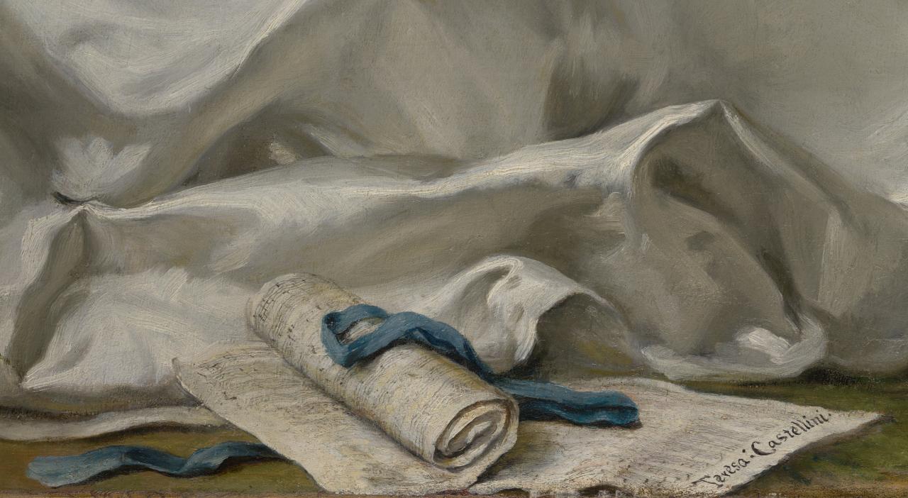 Scholar Touba Ghadessi has argued that Farinelli has chosen to emphasise his romantic ties to Castellini in the portrait to reinforce his masculinity and to counter speculation concerning his sexuality that resulted from his mutilation.22Touba Ghadessi, Portraits of Human Monsters in the Renaissance: Dwarves, Hirsutes and Castrati as Idealized Anatomical Anomalies, Medieval Institute Publications, Kalamazoo, 2018, p. 144. As a celebrity Farinelli was beset by the enduring public fascination with the erotic life of a castrato. It is evident that an important secondary function of the painting is to emphasise his respectability, using decorum to counter the gossip about his private life and emphasising instead his high social status and his success at the Spanish court. The pageboy, the dog with his initials on its collar and, above all, the cross of Calatrava all perform this function. The cross nestles in the folds of his white shirt, with the insignia also embroidered on his coat. The admittedly slim evidence we have for the relationship between Farinelli and Castellini contradicts Ghadessi’s hypothesis however, suggesting that rather than being an attempt by Farinelli to assert his masculinity to a skeptical public, the portrait is but a pale reflection of the genuine feelings he had for Castellini.