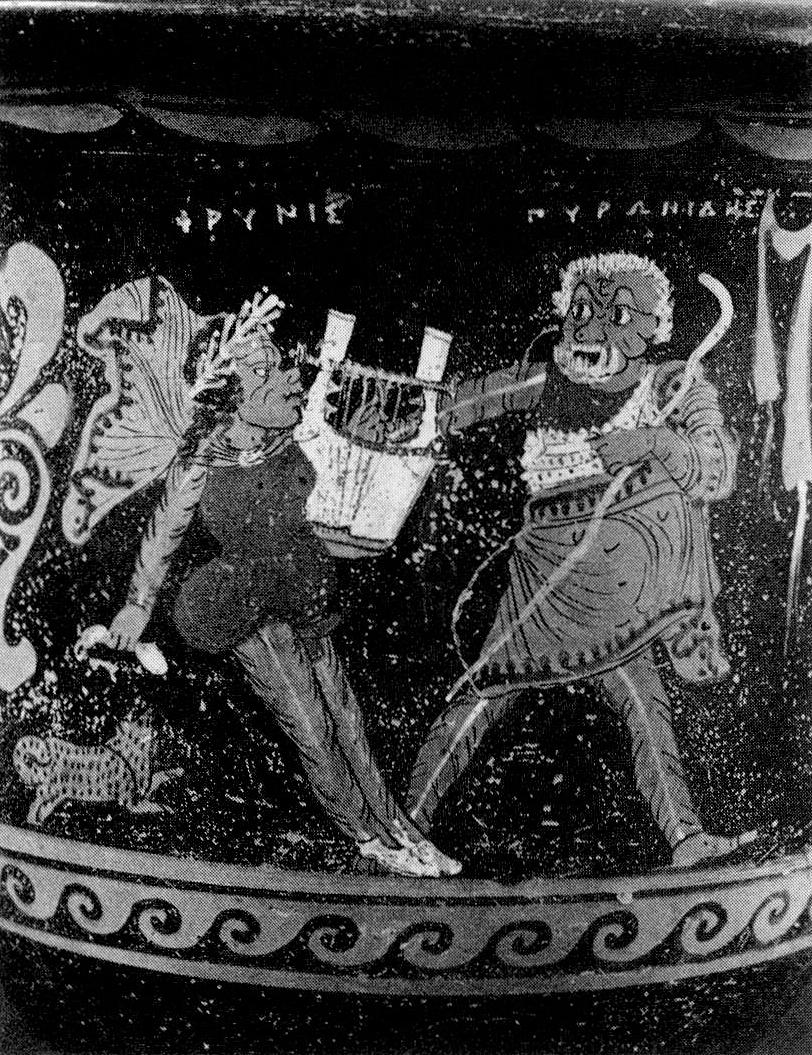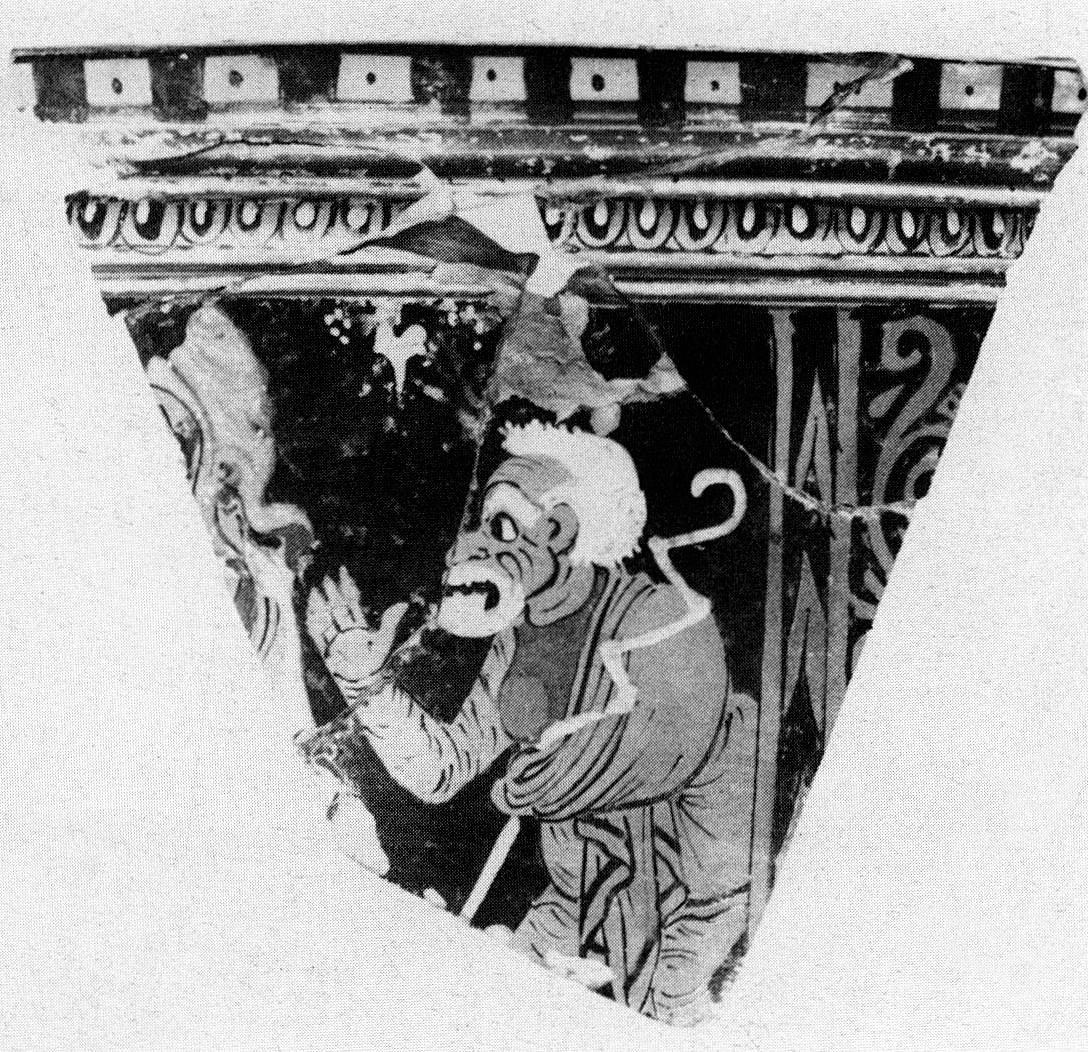 50 D14/1973. Art Bull. Vict. 1975, pp. 11–15, figs 1–2; Trendall, Greek Vases in the N.G. V., p. 26, pl. 14b. On phlyax vases see, in particular, M. Bieber, History of the Greek and Roman Theater, 2nd ed., Princeton, 1961, pp. 129–46; Trendall, Phlyax Vases, 2nd ed., B.I.C.S., Suppl. 19; London, 1967; id. and T. B. L. Webster, Illustrations of Greek Drama, London, 1971, pp. 11–13 and 137 ff. See also Webster (revised by J. R. Green), Monuments Illustrating Old and Middle Comedy, 3rd ed., B.I.C.S., Suppl. 39; London, 1978, where a list of mask-types is given on pp. 13 ff.