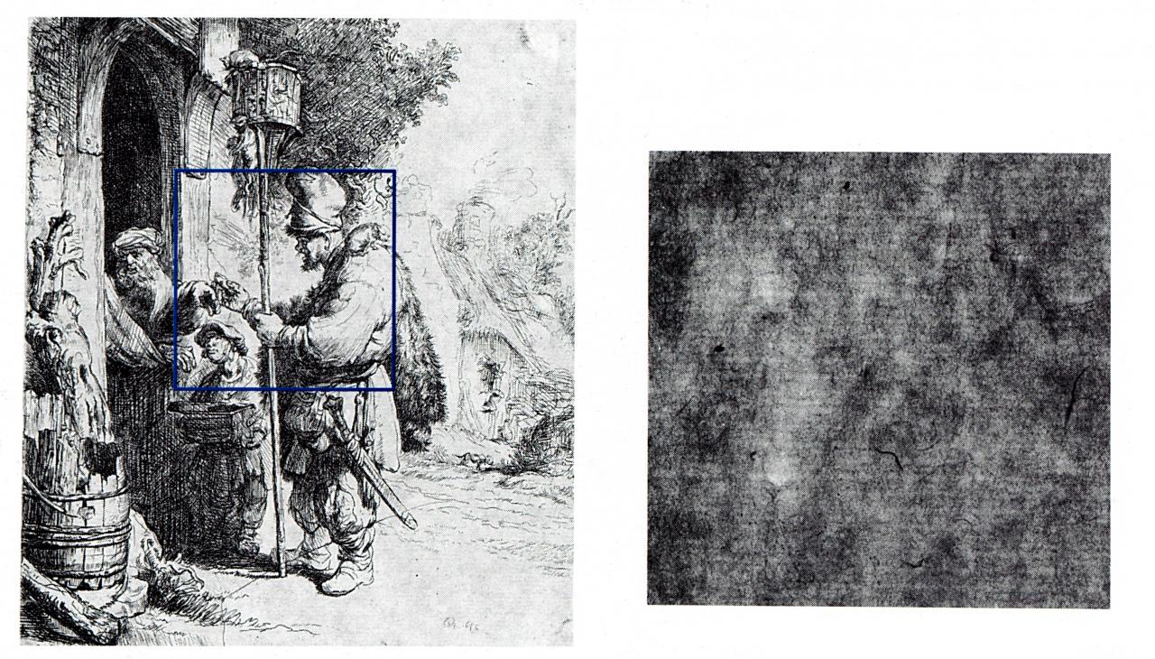 The National Gallery of Victoria has in its collection a copy after Rembrandt’s print The Rat Catcher, 1632 (B.121). Made in the late eighteenth century by the English artist James Bretherton (active 1770–1781), this copy is printed on authentic Xuan paper (Paper B), probably 100 per cent seitan.