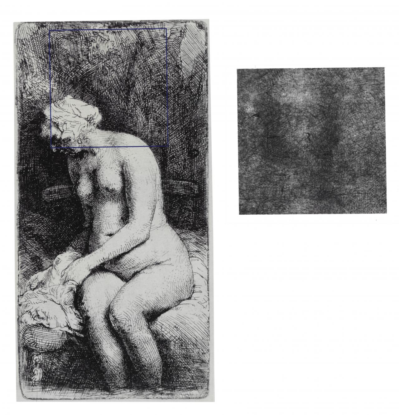A posthumous impression of a Rembrandt etching on an imitation oriental paper