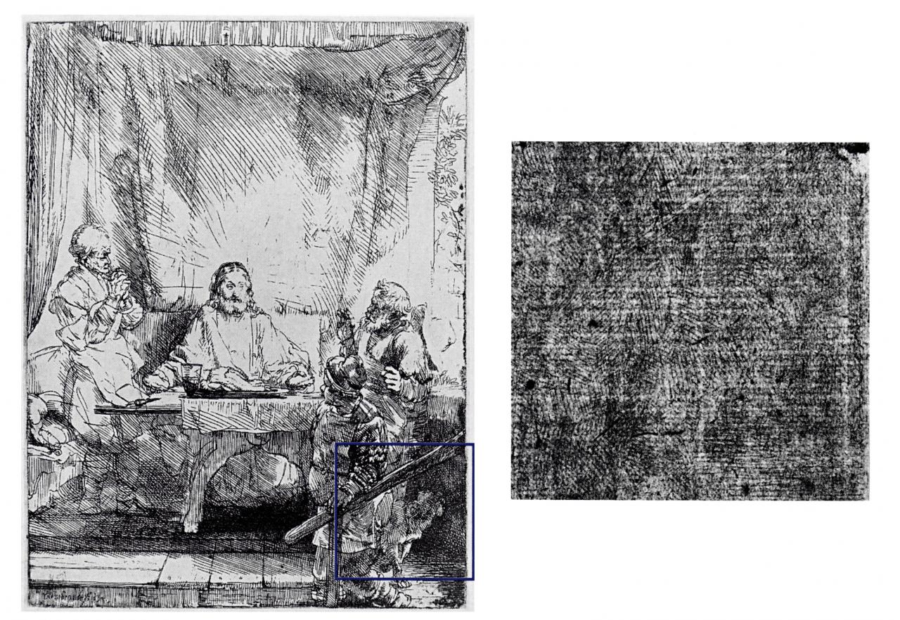 7 Biörklund, ‘Old Paper’, p. 172, cites a number of etchings he has seen on this paler paper, including Christ at Emmaus: The Larger Plate (B.87). The National Gallery of Victoria’s impression of this print is on what we will be calling Paper 6, which may well be this same paper.