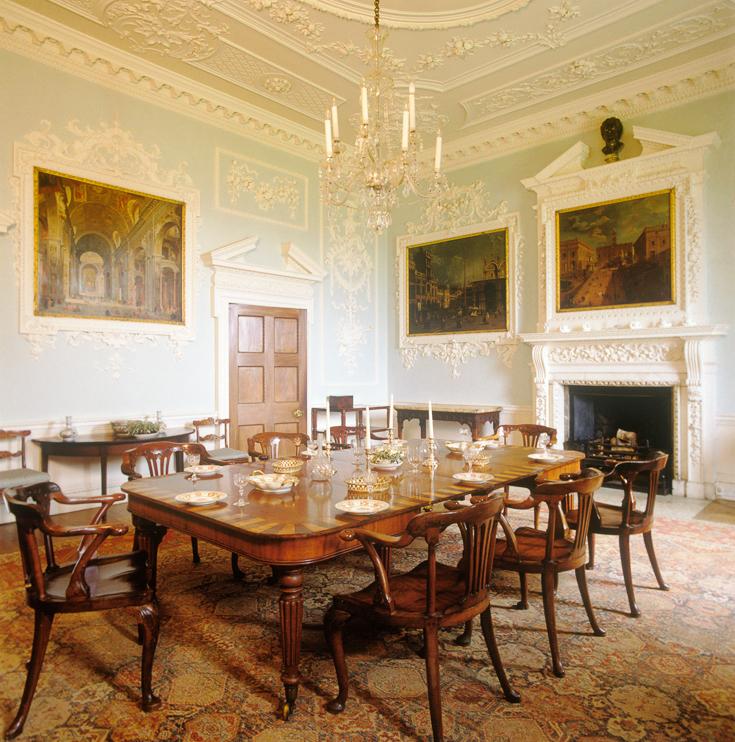 For whatever reason, it was not until the mid or late 1740s that Holbech had the opportunity to create a proper environment for his pictures along the lines of those that he had seen in Venice and Rome in the 1720s and early 1730s. This may explain why these rooms are considered to be unusual for England in 1750 in the way paintings are presented surrounded by elaborate stucco framing.26 Cornforth, II, p.51. Jackson-Stops & Haworth, p. 11. But Holbech’s ambitions had evidently developed and the paintings he had acquired in 1734 were not sufficient for his purposes. He had only two Canalettos and, to decorate a room satisfactorily, he needed more. Fortunately, it was not difficult to acquire them as Canaletto was then in England. Indeed, in 1748 he was making drawings nearby at Warwick Castle for Lord Brooke,27 There are bank payments dated July 1748 and March 1749 (as well as in 1752), and an entry in the estate account book in 1748 records a payment for a drawing of the castle. See D. Buttery, ‘Canaletto at Warwick’, Burlington Magazine, July 1987, pp. 437–5; M. J. Liversidge & J. Farrington (eds), Canaletto and England (exh. cat.), Birmingham Museums and Art Gallery, 1993, pp. 82–6; see also Bettagno, 1982, no. 105, pp. 76–7. The paintings would have been executed in London and sent to Lord Brooke’s townhouse. and was producing views of Badminton House, painted in the summer of 1748.28 Liversidge & Farrington, p. 18. He could well have come to Farnborough Hall at this time and have taken orders for them. That Canaletto visited and gave advice on the stucco framing is enshrined in the Holbech family’s oral tradition.29 Links, in Canaletto (Bettagno), 1982, p. 65. This is dismissed by Cornforth, II, pp. 51–2.