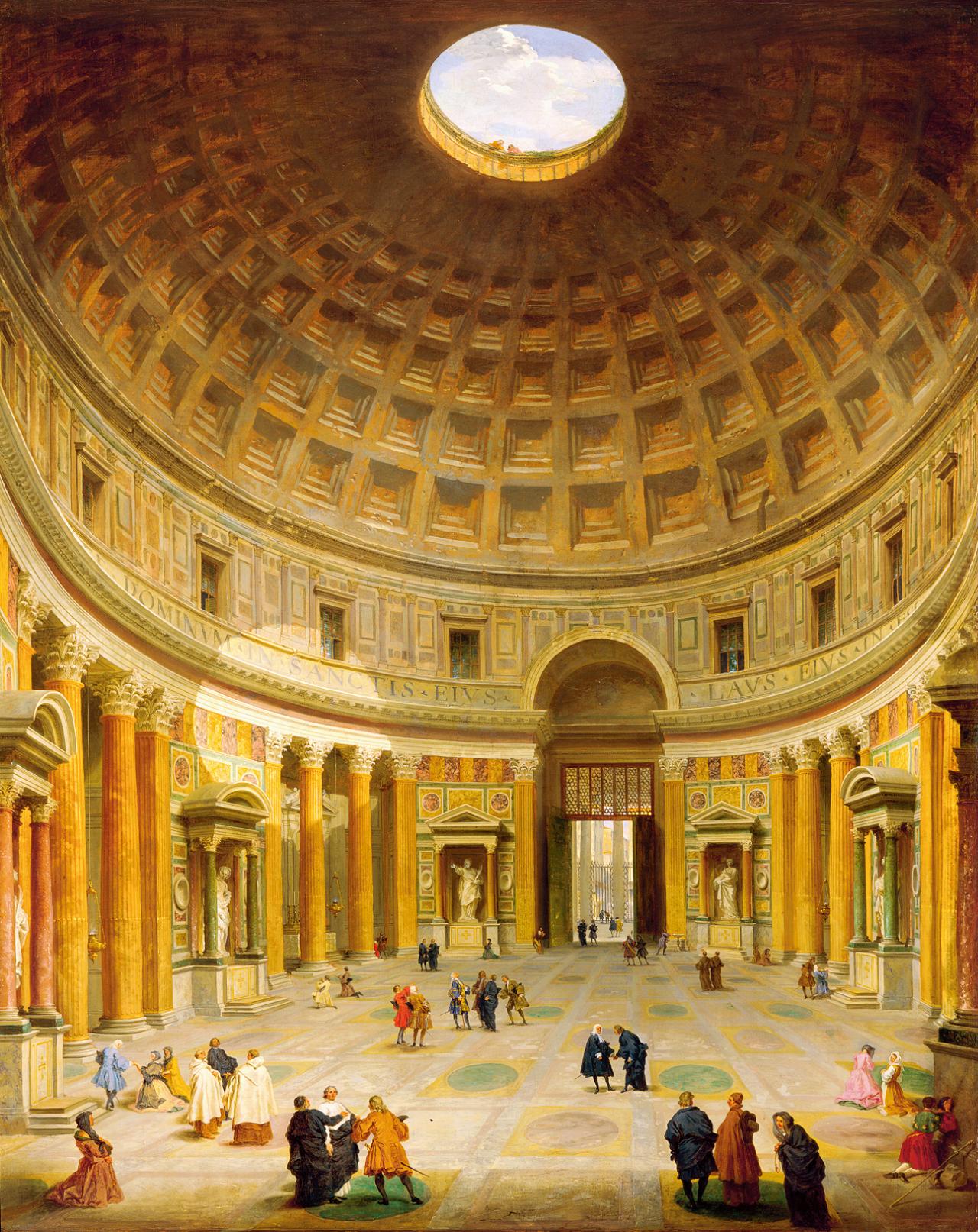 Farnborough Hall is the seat of the Holbech family. The house and estate passed to the National Trust in 1960, followed by the principal contents in 1986 and 1988, and is still the home of Mr and Mrs Geoffrey Holbech. In 1717 it was inherited by William Holbech (c.1699–1771), who remodelled the house in about 1746–47 by creating a saloon, now the dining room, at the back of the house. This room and the entrance hall, staircase, library and closet were stuccoed in 1750 by William Perritt of York and a bill for this work dated 14 November 1750 survives.4 G. Beard, Decorative Plasterwork in Great Britain, London, 1975, p. 233; J. Cornforth, ‘Farnborough Hall, Warwickshire – II: A property of the National Trust and the home of Mr and Mrs Geoffrey Holbech’, Country Life, vol. 190, no. 29, 1996, pp. 50–3. The staircase and hall (fig. 3) are furnished with antique busts, some of which were acquired from the Roman dealer Belisario Amidei in 1745, and the hall had an overmantel by Panini.5 I. Hiller, ‘Geschichte des Hauses und der Skulpturensammlung’, in Di Antiken Skulpturen in Farnborough Hall, sowie in Althorp House, Blenheim Palace, Lyme Park und Penrice Castle, A. Scholl, Mainz, 1995, pp. 35–6. See also J. Scott, The Pleasures of Antiquity British Collectors of Greece and Rome, New Haven and London, 2003, note 38, p. 297.The dining room (fig. 4) was decorated with four Canalettos and two Paninis, one of which was an overmantel. The paintings were removed in 1929 (and sold to Savile Gallery),6 G. Holbech, in conversation with the author, indicated that all were sold to the one dealer, Savile Gallery. who arranged for their replacement with poor copies painted by one Mohammed Ayoub,7 E. Croft Murray, Decorative Painting in England, 1537–1837, vol. 2, London, 1970, p. 179. Other sources refer to ‘Chinese artists’; for example, M. Laskin & M. Pantazzi, European and American Painting, Sculpture, and Decorative Arts, 2 vats, Ottawa, 1987, p. 49. arranged by the dealer.8 According to G. Holbech. The Paninis seem to have been resold immediately to M. Knoedler & Co. in New York. The four Canalettos entered the London art trade and found their way at various times to Augsburg (Constable & Links (henceforth CL) 38),9 Piazza S. Marco: Looking west from the north end of the Piazzetta (The piazza between the Libreria and the Loggetta). Oil on canvas, 132 x 165 cm. Augsburg, Staatsgalerie. Constable & Links, no. 38, vol. 2, pp. 201–2. Savile Gallery, 1930, no. 3; London, Tomás Harris, 1932, no. 4; London, Arthur Tooth and Sons, Old Masters, Nov.–Dec. 1944, no. 3; exhibited Whitechapel-Birmingham, Eighteenth Century Venice, 1951, no. 8, lent by Mark Oliver; with Agnew’s, London; Brown, Boveri & Co., Baden, Zurich in Constable & Links; as Switzerland, Private Collection, in A. Bettagno, Canaletto: Disegni, Dipinti, Incision, Vicenza, 1982, no. 91; sale Sotheby’s, London, 1986, where bought by the Augsburg gallery. Melbourne (CL 128),10 The Bacino di S. Marco from the Piazzetta. Oil on canvas, 131.4 x 163.2 cm. Melbourne, National Gallery of Victoria, Felton Bequest 1986, E1-1986. Constable & Links, no. 128, vol. 2, pp. 248–9. Bettagno, no. 92, pp. 65–6. Savile Gallery, 1930, no. 5; London, Arthur Tooth and Sons, November–December 1944, no. 20; as Arthur Tooth and Sons in Constable & Links in 1976 and as New York, private collection in Bettagno, 1982, but according to European Masterpieces. Six Centuries of Painting from the National Gallery of Victoria, Melbourne, 2000, with Agnew’s in 1976, 1982 and 1985 when acquired by the National Gallery of Victoria. Ottawa (CL 45)11 Piazza S. Marco: The north-east corner. Oil on canvas, 132.8 x 165.1 cm.National Gallery of Canada, Ottawa, no. 3718. Constable & Links, no. 45, vol. 2, p. 205. Exhibited at Savile Gallery, 1930, no. 4, and bought for the National Gallery of Canada in that year. Laskin & Pantazzi, 1987, as St Mark’s and the clock tower, Venice, in Laskin & Pantazzi, 1987, where dated 1735–37. and a painting in 1987 with Dino Fabbri, New York (CL 173).12 Entrance to the Grand Canal, looking east (The Salute towards the Bacino). Oil on canvas, 132 x 165 cm. Private collection. Constable & Links, 1976, no. 173, vol. 2, p.270. Savile Gallery, 1930, no. 6; London: Tomás Harris, 1932, no. 5; London, Arthur Tooth & Sons, 1944; exhibited Whitechapel Birmingham, Eighteenth Century Venice, 1951, no. 9, lent by Tooth; as Arthur Tooth & Sons in Constable, Links & Bettagno, 1982, no. 93. Laskin & Pantazzi in 1987 give its location as Dino Fabbri Collection, New York. The Paninis had been lost sight of since, although the Interior of St Peter’s, now in Detroit (fig. 5), was published in Ferdinando Arisi’s catalogue raisonné of Panini’s paintings; no mention was made of the Holbech provenance, which is established by a label on the back.13 G. P. Panini, Interior of Saint Peter’s, Rome. Oil on canvas, 132 x 145 cm. Detroit Institute of Arts, inv. 56.43, gift of Mrs Edgar R. Thom. Signed and dated ‘I.P.PANINI/ROMAE/1750′. F. Arisi, Gian Paolo Panini e i fasti della Roma del ‘700, Rome: Ugo Bozzi, 1986, no. 407. A label on the back reads, ‘Colonel Holbech, No. 1 / The interior of St. Peter’s, Rome, by Panini / (illegible number which may be 1896) / April’. I would like to thank Andria Derstine for bringing the label to my attention. As far as I am aware, only N. C. Wixom & M. Linsey, ‘Panini, interior of the Pantheon, Rome’, Bulletin of the Cleveland Museum of Art, vol. 62, no. 9, 1975, pp. 263–9, followed by Laskin & Pantazzi, p. 49, make the connection between the Lunde painting and the Farnborough Hall commission. The other two Paninis, representing the Campidoglio and Piazza S. Pietro, are in a private collection in New York.14 Neither work is in Arisi.