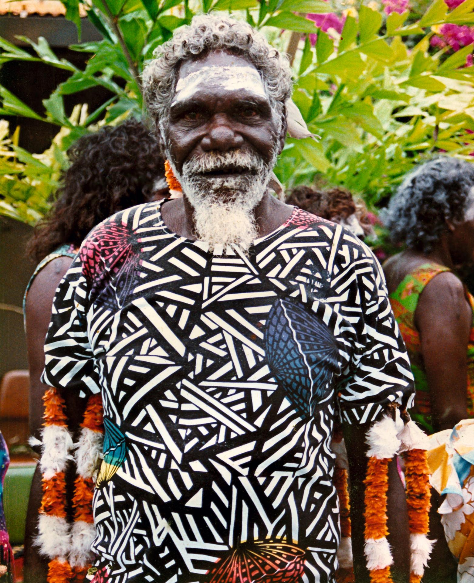 Early advocates of Yolŋu painting admired both the artistry and the unique representational system that encodes these religious narratives. While many Yolŋu were instrumental in bringing bark painting from this region to public attention, few have been recognised as individual agents within this history. Mawalan Marika, Muŋgurrawuy Yunupiŋu and Narritjin Maymuru are perhaps the most highly celebrated of these painters. Less well-known is Djutjadjutja Munuŋgurr (c.1935–1999) (fig. 1), a ceremonial leader of Djapu-speaking Yolŋu who, in his final years, augmented his role as a statesman with a renewed enthusiasm for bark painting.