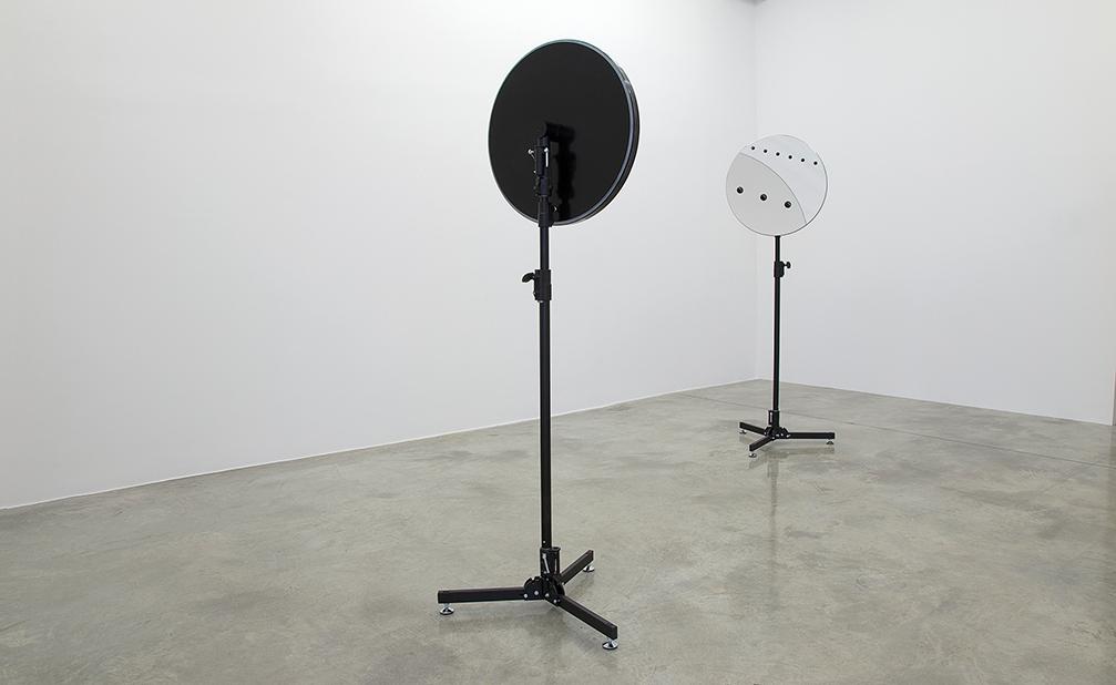 The accompanying Venus mirrors (05/06/2012, Hawaii & Tahiti inverted), 2012, invoke the perceptual, distorting and inverting effects of cameras obscura, speculum mirrors found in telescopes, magnifying glasses and photographic lenses. The mirrors present the 2012 transit as it was observed in June 2012 from Tahiti and Hawaii – sites visited by the artist and significant in eighteenth- and nineteenth-century observations.