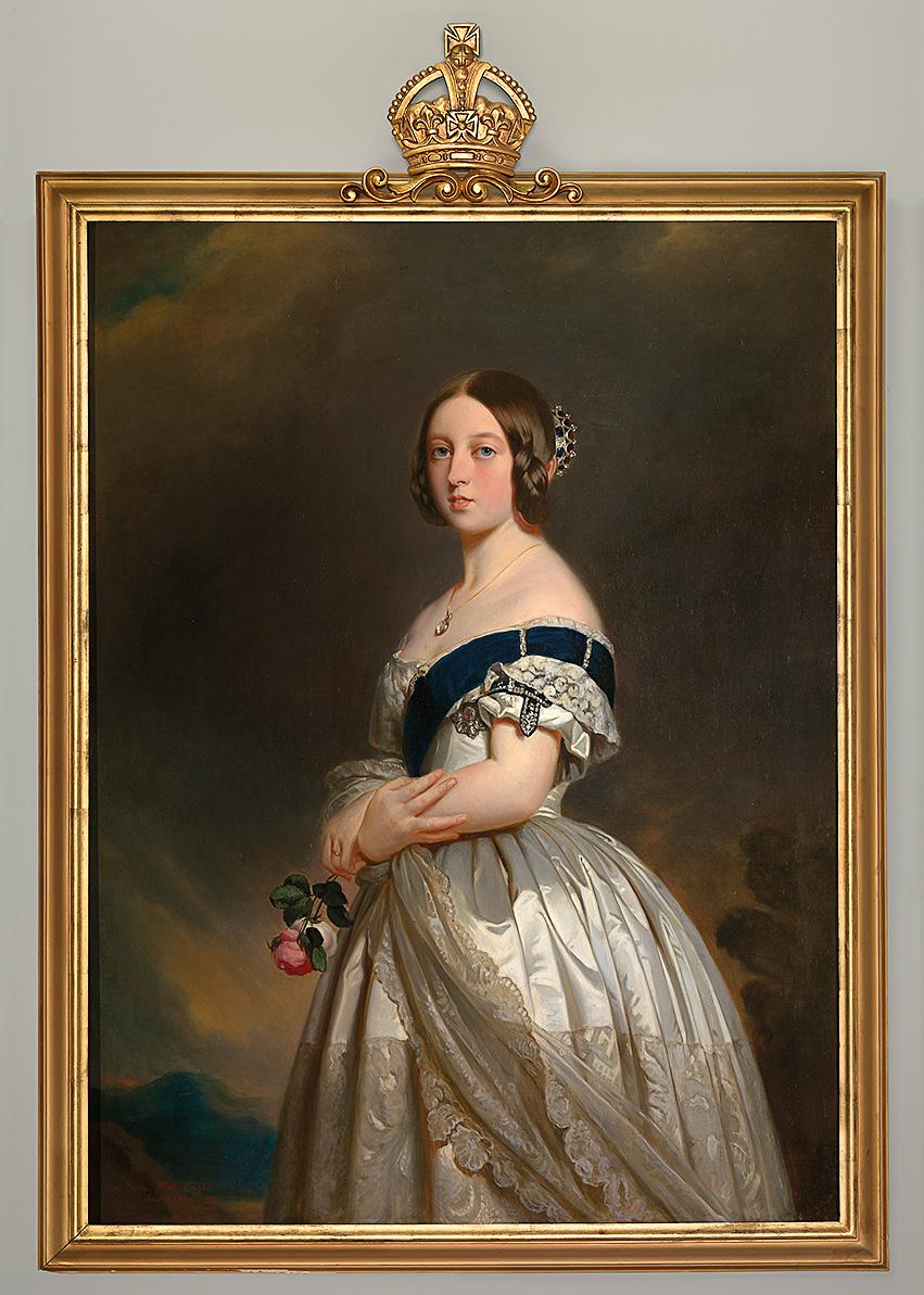 In the nearly forty years which elapsed from the founding of the NGV until the death of Queen Victoria on 22 January 1901, many works of art representing the queen and the royal family – ranging from painted and sculpted portraits, to narrative pictures representing major royal events – were acquired by the NGV, or exhibited in Melbourne as much admired loan items. In addition, other major portraits of the queen were acquired for public venues such as Parliament House and Government House, and a group of monumental statues of Queen Victoria were erected in Melbourne and other cities in what had just become the new state of Victoria, following her death in 1901.2Queen Victoria died just three weeks after the new nation of Australia became a political reality (1 January 1901), having signed the Constitution of Australia Act on 9 July 1900. The aim of this essay is to document this process, and to recreate – since many of the most important items have been disposed of, and subsequently damaged or destroyed through neglect – the iconography of royal portraiture in colonial Victoria.