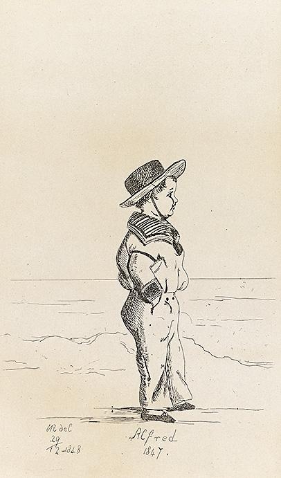 The aim of the second exhibition of the Royal Anglo-Australian Society of Artists, held in 1892, was to bring major works by British artists to Australia – in effect, an echo of the annual Royal Academy Exhibition in London – to maintain the momentum (and consequent sales opportunities) created by the fine art sections of the international exhibitions of 1880 and 1888. It was well-organised with vice-regal patrons and a distinguished list of honorary members headed by the Princess of Wales and Princess Louise, and including Sir Frederick Leighton and Sir John Everett Millais; there was a council made up of well-known Royal Academicians, and a group of foreign honorary members. A guarantee fund had been set up by a number of Melbourne businessmen, including Alfred Felton who was soon to buy Rupert Bunny’s A sea idyll (cat. no. 90) priced at £105, which he presented to the NGV.35See Exhibition of the British Art Gallery by the Royal Anglo-Australian Society of Artists, with which is Associated the German Art Gallery and a Selection of Pictures by Australian Artists, Illustrated Catalogue, Compiled and Edited for the Society by J. Lake, Manager in Australia, Melbourne, 1892. Of special interest for the general public was a section of the exhibition dedicated to original works by Queen Victoria: four drawings, one watercolour and twelve etchings, of which seven were by the queen and five by Prince Albert.