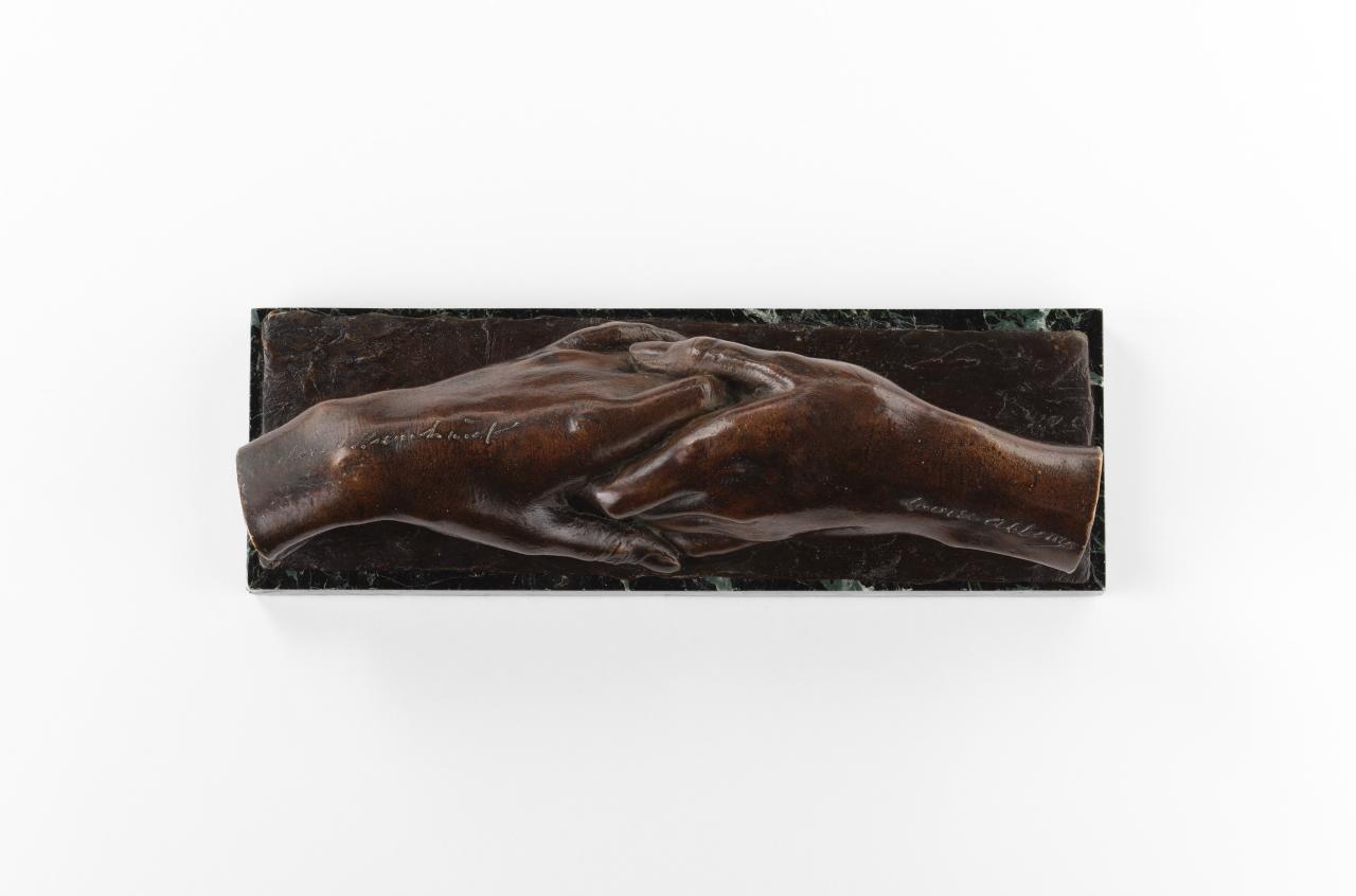 Abbéma was ever-present in Bernhardt’s daily life and at her death in 1923. Some fifteen years earlier, around 1908, Bernhardt and Abbéma had their hands, clasped together in friendship, copied in plaster and then cast as a bronze sculpture commemorating their many decades together. As Abbéma recalled in 1921: