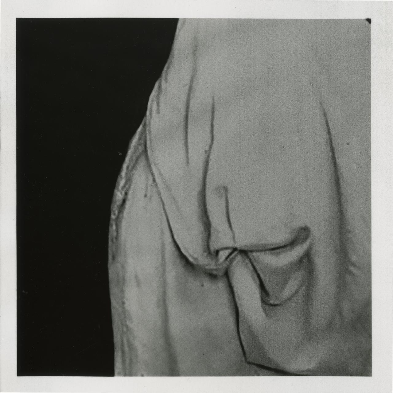 At the earlier stages of my research, I spent days saving from the online archive the images I wanted to work with or study. I didn’t realize that every time I saved an image it only saved a square grab of the picture, from where I clicked on it. The result was hundreds of small square images of folded fabric and hidden faces, purely selected by chance. I decided to continue to save more images and bring them into the project, as a way of referencing the repetition, excess and obsession with the fold – the very qualities of the Baroque period as described by Deleuze in his book The Fold.2