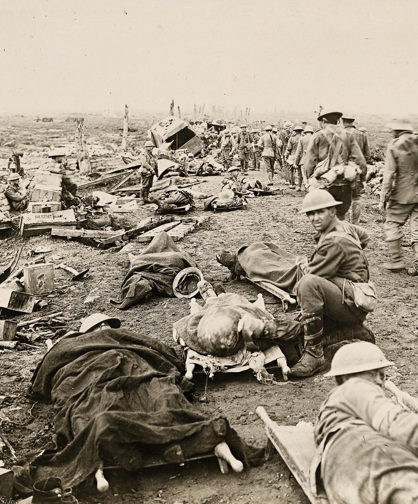 The way was gruesome and awful beyond words. The ground had been recently heavily shelled by the Boche and the dead and wounded lay about everywhere … Last night’s shower too, made it a quagmire, and through this the wounded had to drag themselves, and those mortally wounded pass out their young lives.9 ibid. (20 September 1917).