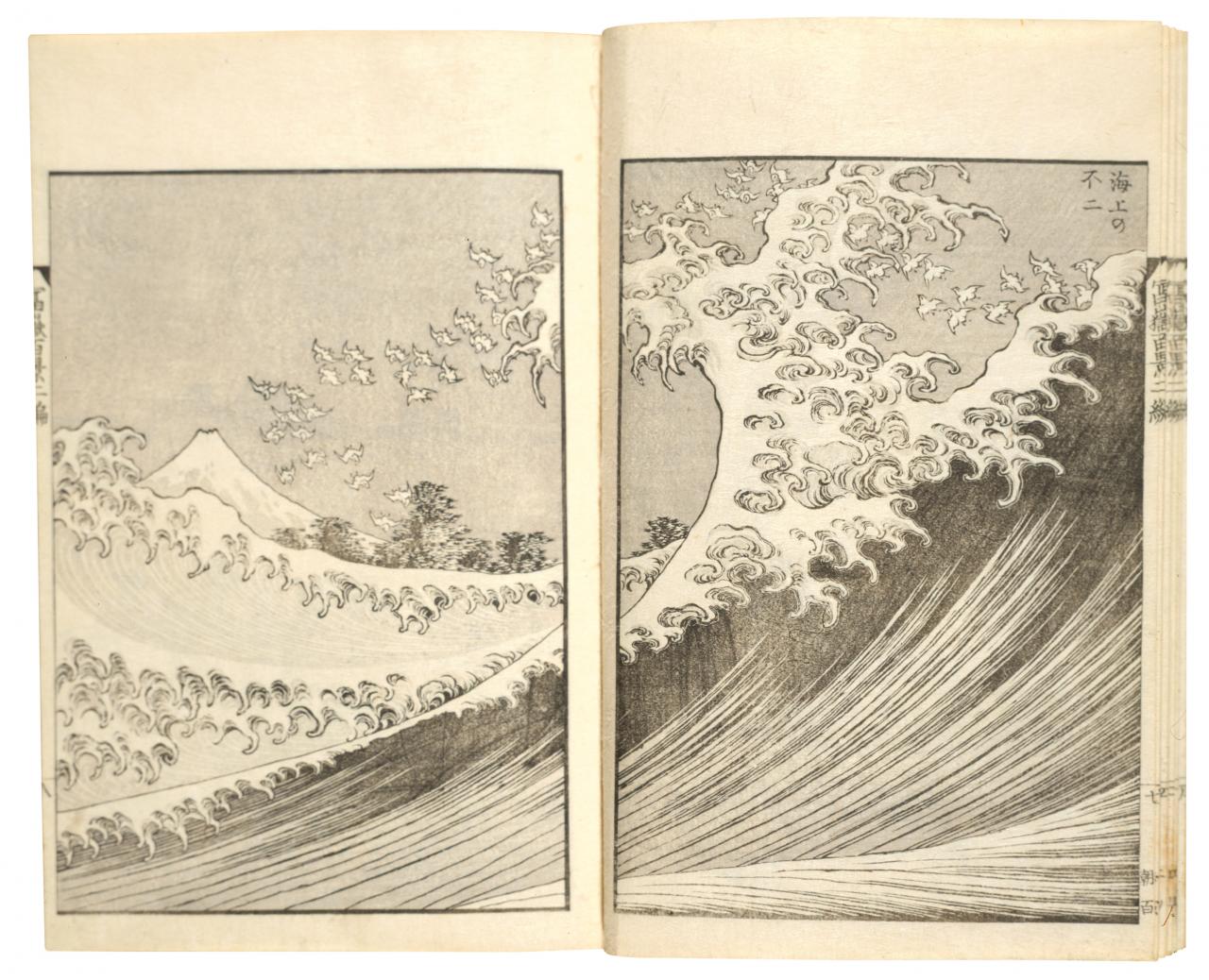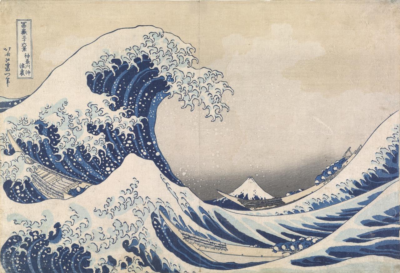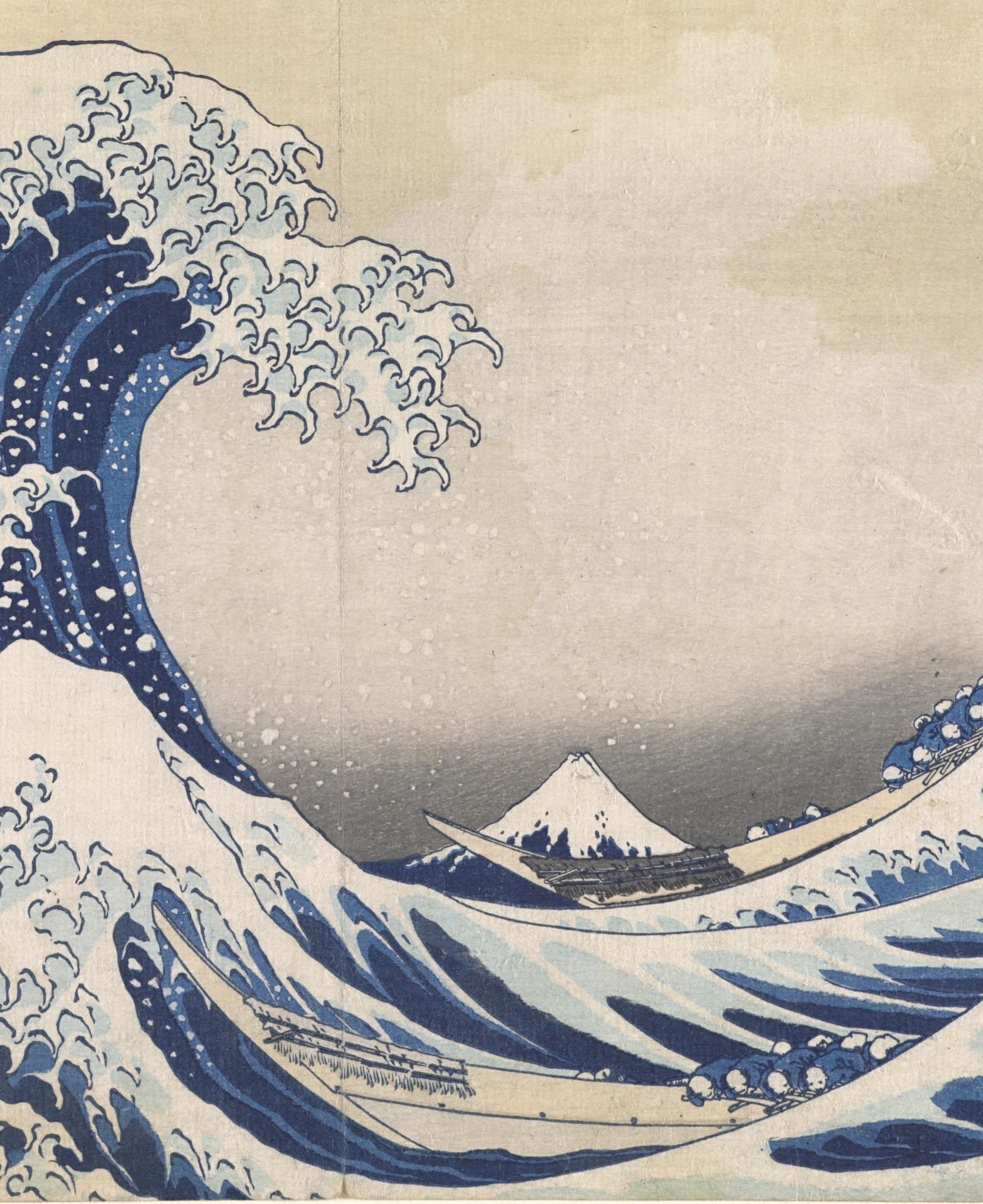 Hokusai was one of the most influential artists of the Japanese Edo-period (1600–1868) art movement known as ukiyo-e, or pictures of the floating world. He was an eclectic artist who, over a period of more than seventy years, created a huge body of work that drew together myriad influences, including Western techniques as well as traditional Japanese and Chinese elements. His method of revisiting favourite motifs such as Mount Fuji and waves gives a visual guide to the evolution of his artistic style. In this article, by focusing on Hokusai’s depictions of waves, I will demonstrate that what enabled him to realise his artistic vision in The great wave was a synthesis of Eastern and Western aesthetic traditions.