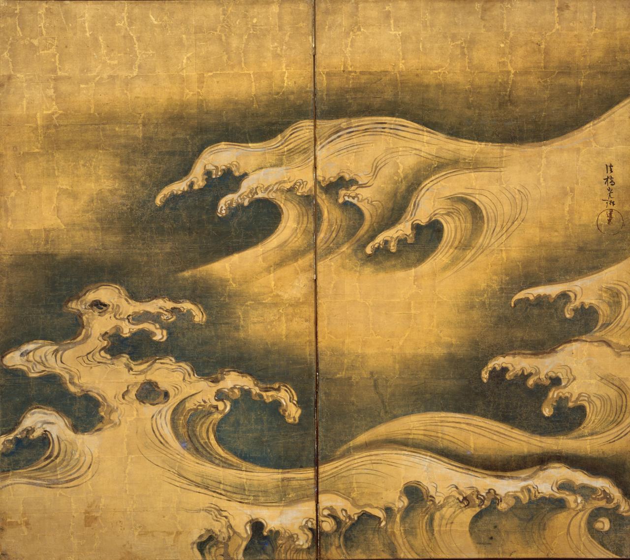28 Kōrin had been inspired to depict this wave by Tawaraya Sotatsu’s (active c.1600–40) similar depictions such as his Rough seas in the Tokyo Fuji Art Museum. Later, Hokusai’s Edo contemporary Sakai Hōitsu (1761–1828) produced paintings of similar subjects.