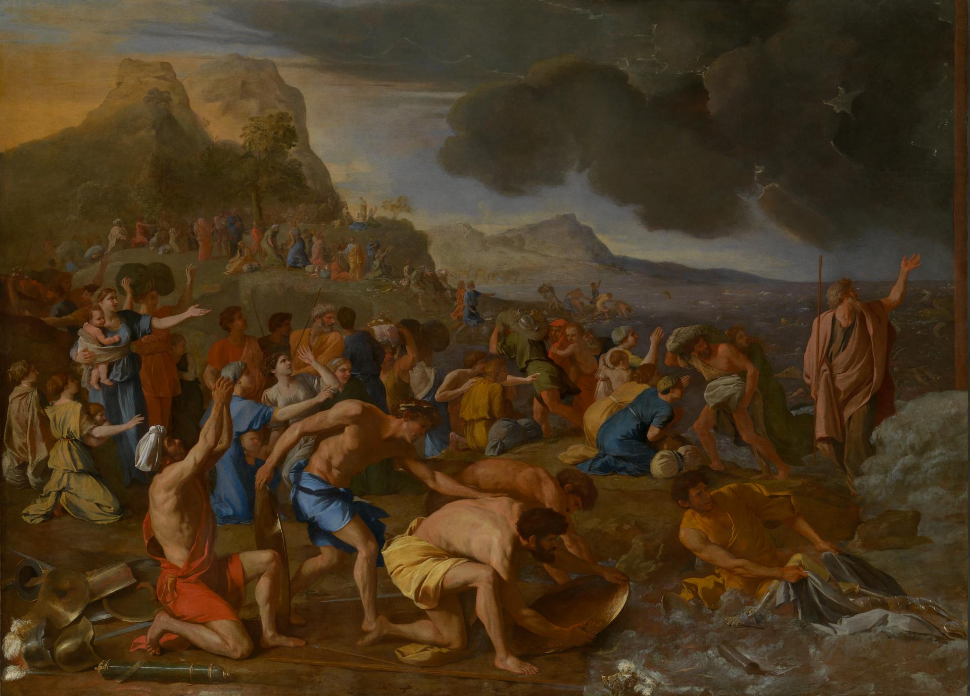 Exodus 14 is the source text for Poussin’s Crossing of the Red Sea. This highly cinematic passage of the Old Testament provides a wealth of details and scenes for narrative painters to draw on, and it is clear that Poussin studied it closely when he began devising his version.