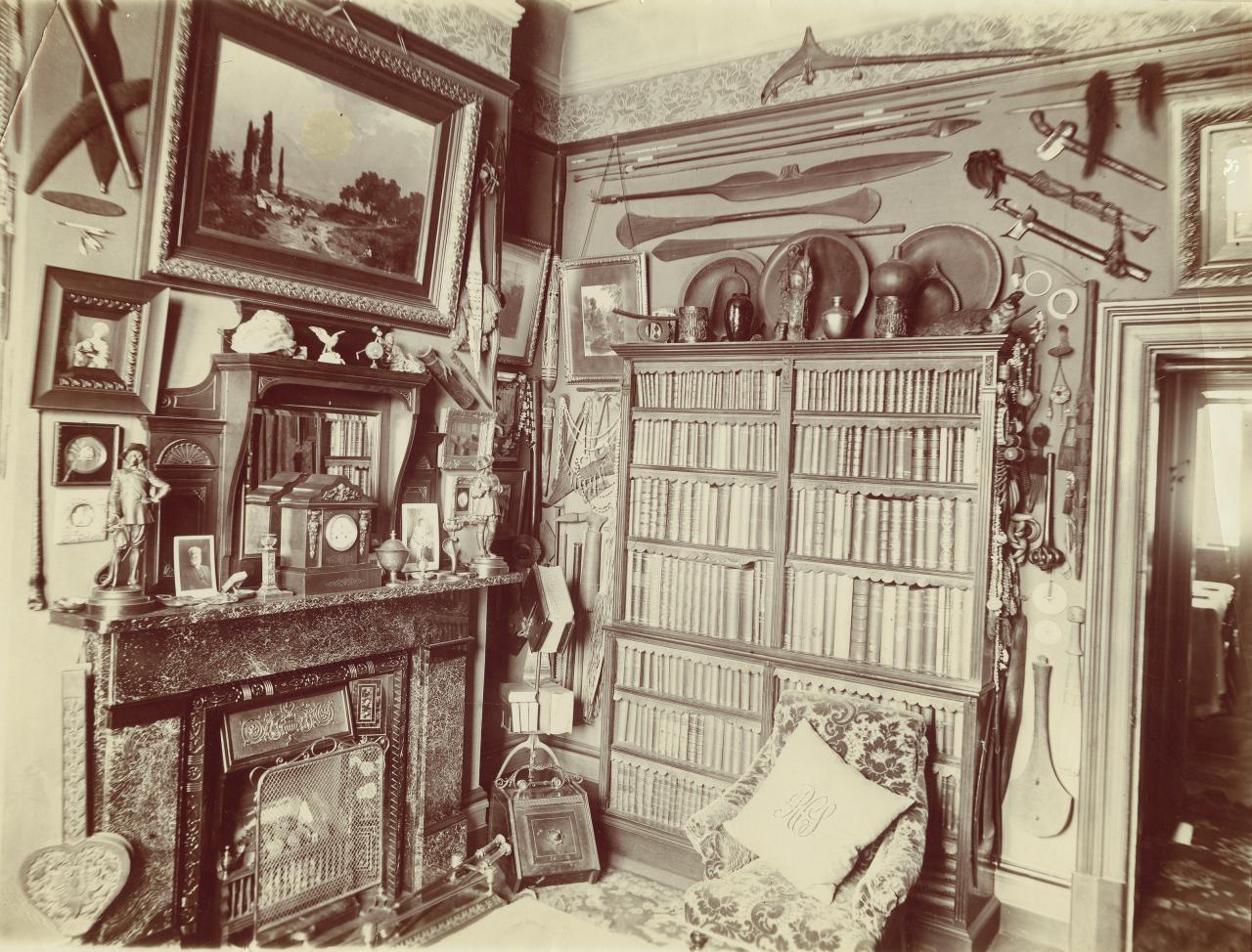 It is likely that in these years Sticht’s collections came to have even greater importance to him than in the heady years of collecting, perhaps acting as a small window onto the wider intellectual world, of which he felt himself less and less a part. After a decade of dedicated art collecting, Sticht possessed a collection of European, including English, prints, old master drawings, and eighteenth- and nineteenth-century oil and watercolour paintings,32 A large proportion of these paintings were acquired in the period 1903–07, through Frank Godden, although Sticht continued to acquire the occasional work in this area in the years up to 1921. as well as Australian drawings and paintings, conservatively valued at over £4000. His specialist library, consisting of manuscripts, incunabula, bibliographical rarities and antiquities, antiquarian works, Australiana and editions de luxe, was valued at £2805, while his general library was valued at a further £2475.33 Sticht’s insurance schedule on the contents of Penghana in 1911 includes valuations for the following: ‘Engravings on copper and steel, and woodcuts, £425; Etchings (on copper) and the like £250; Collection of Old Master Etchings £750; Drawings on paper by Old Masters £950; … Oil paintings [£1037]; Watercolour paintings [£1020]; Art, antiquarian works, Australiana, bibliographical rarities and antiquities, incunabula, edition de luxe, manuscripts, and the like, £2805’ (insurance schedule, 8 September 1911, Freehill, Hollingdale & Page, Melbourne). Penghana was now a private museum for its owner, every suitable wall hung with oil paintings, watercolours, miniatures, or anthropological items (fig. 5). Many rooms in Sticht’s house were lined with shelves for books, and for solander boxes and portfolios for incunabula, prints and drawings, and other rare or fragile works.34 Thirteen of the portfolios are extant, housing Sticht fragments, including his collection of title pages, in the State Library of Victoria’s Rare Books Collection. Despite this attempt at order, Sticht wrote: