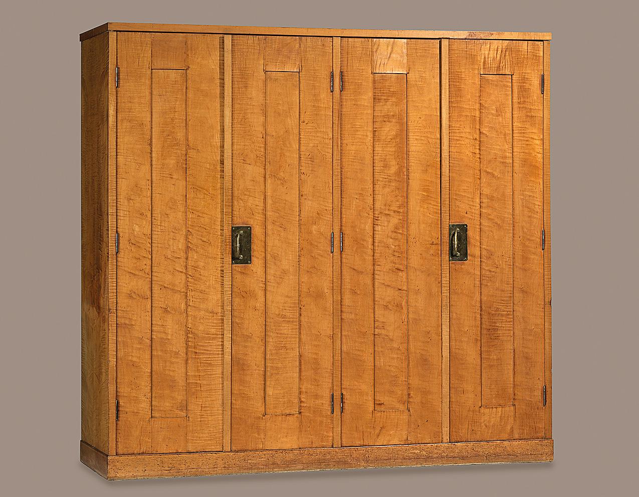 The other furniture Loos designed for the Langers’ apartment – room divider, wardrobe, folding mirror, desk and cupboards – echoes the plainness of the dining room, relying for its effect upon the attractiveness of the timber, restrained detailing and balanced proportions. He used flat surfaces, with the plains of timber broken and enlivened by reeding or panelling. Brass fittings for handles and key escutcheons are similarly plain, often substantial, with minimal ornament. These provide decorative highlights through their gleaming surfaces. Their understatement, in which truth to materials and durability and functionality are emphasised, forms a startling contrast to much contemporaneous Viennese design, including that of Hoffmann, in which stylishness was the norm, and surfaces were concealed under stain and paint, often highlighted with gilding. This also underscores Loos’s approach. He was designing for the affluent middle classes, not for aristocrats.
