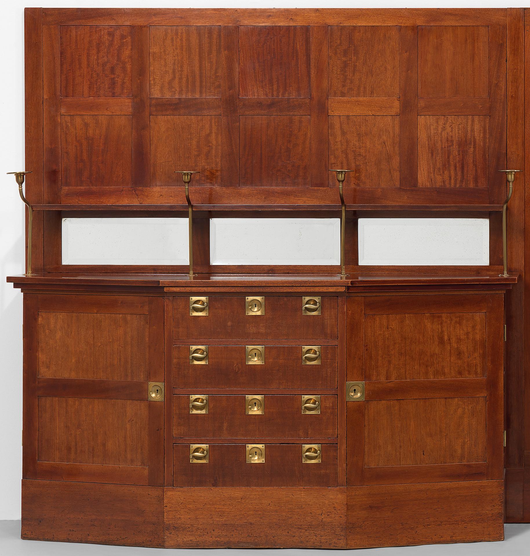 Among the many private individuals in Vienna who turned to an architect to design their apartment was the couple Jakob and Melanie Langer. The Langers married in December 1902,8Jakob Langer (9 April 1866 – 12 July 1932) and Melanie Gallia (11 June 1882 – 16 January 1937) were married in Vienna on 9 December 1902. I am indebted to Sue Course, their granddaughter, for supplying this and other information on the Langer family. and the NGV possesses a splendid group of furniture designed by Loos in 1903 for their Viennese residence.9Brought to Melbourne from Vienna by Jakob and Melanie Langer’s daughter, Liesl, after the Second World War and acquired by the NGV in 1994 and 1995. This was an early commission in the architect’s career. He had only been in practice for a few years, with one public and a few private commissions to his name. However, he was not unknown to the Langers: Loos had previously designed an apartment for Jakob Langer’s brother, Dr Leopold Langer, a banker, at Opernring 13 in 1901.10Illustrated in: Burkhard Rukschcio & Roland Schachel, Adolf Loos: Leben und Werk, Residenz, Salzburg and Vienna, 1982, p. 432; Benedetto Gravagnuolo, Adolf Loos: Theory and Works, Rizzoli, New York, 1982, p. 101; and Ottillinger, p. 144. Following this commission Loos designed numerous interiors, and some buildings, in Viennese Jewish business and financial circles.11Among the Langer relations, Loos designed apartments and buildings for: Arthur and Leonie Friedmann (Rukshcio & Schachel, pp. 443–6, no. 51; p. 454, no. 61; p. 460, no. 65); R. Fischl (Rukshcio & Schachel, p. 460, no. 64); Paul Khuner (Rukshcio & Schachel, p. 452, no. 57; pp. 617–23, nos 198, 199). Interestingly, Jakob and Melanie Langer’s son, Peter, married Herthe Kary, whose mother’s family and relations were also patrons of Loos. The 1903 apartment for Jakob and Melanie Langer was created in a building designed by Otto Wagner in 1883–84, at Lobkowitzplatz 1.12Rukshcio & Schachel, pp. 83, 187. Unfortunately, unlike Leopold Langer’s apartment, the interiors of Jakob and Melanie Langer’s apartment were not photographed, so it is not possible to obtain a clear impression of the disposition of the furnishings.13Apart from Loos’s contribution to the apartment, two paintings that hung in it, being added a decade later, were landscapes by Max Kahrer (1878–1937); Farmhouse with poplars, Langenpreising, Bavaria, 1914, and Ammersee in winter, 1914, both now in the collection of the NGV. Nevertheless, in the early years of Loos’s career, when he essentially established his style for domestic interiors – a refined modernism, furnished with Loos’s own designs, supplemented with carefully selected historical reproductions – the Langer brothers were his most important private clients. Loos’s own designs were not driven by fashion: when he came up with a good solution, he stuck to it. Indeed, some of the furniture he designed for the Jakob Langers in 1903 – including a room divider and desk – he supplied in similar versions for another client, Gustav Turnovsky, around 1912.14For the Herrenzimmer (smoking room). Illustrated in Ottillinger, pp. 55, 59.